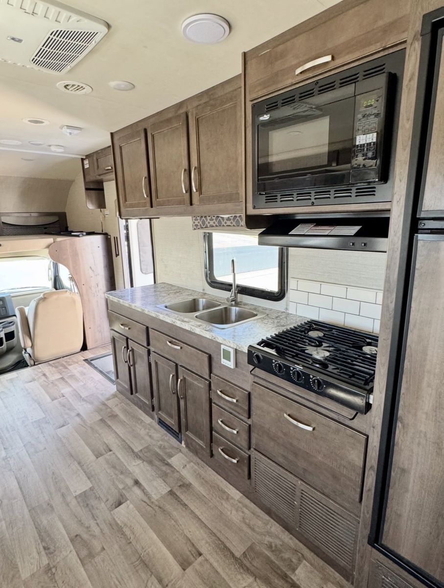 Fully equipped kitchen • Double sink • Stove + microwave • 8 cu. ft. fridge • Tons of cabinets and storage