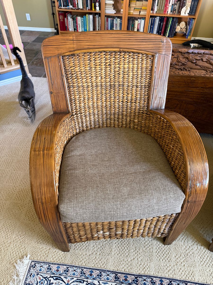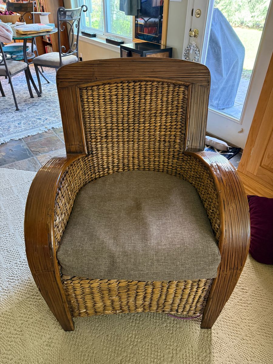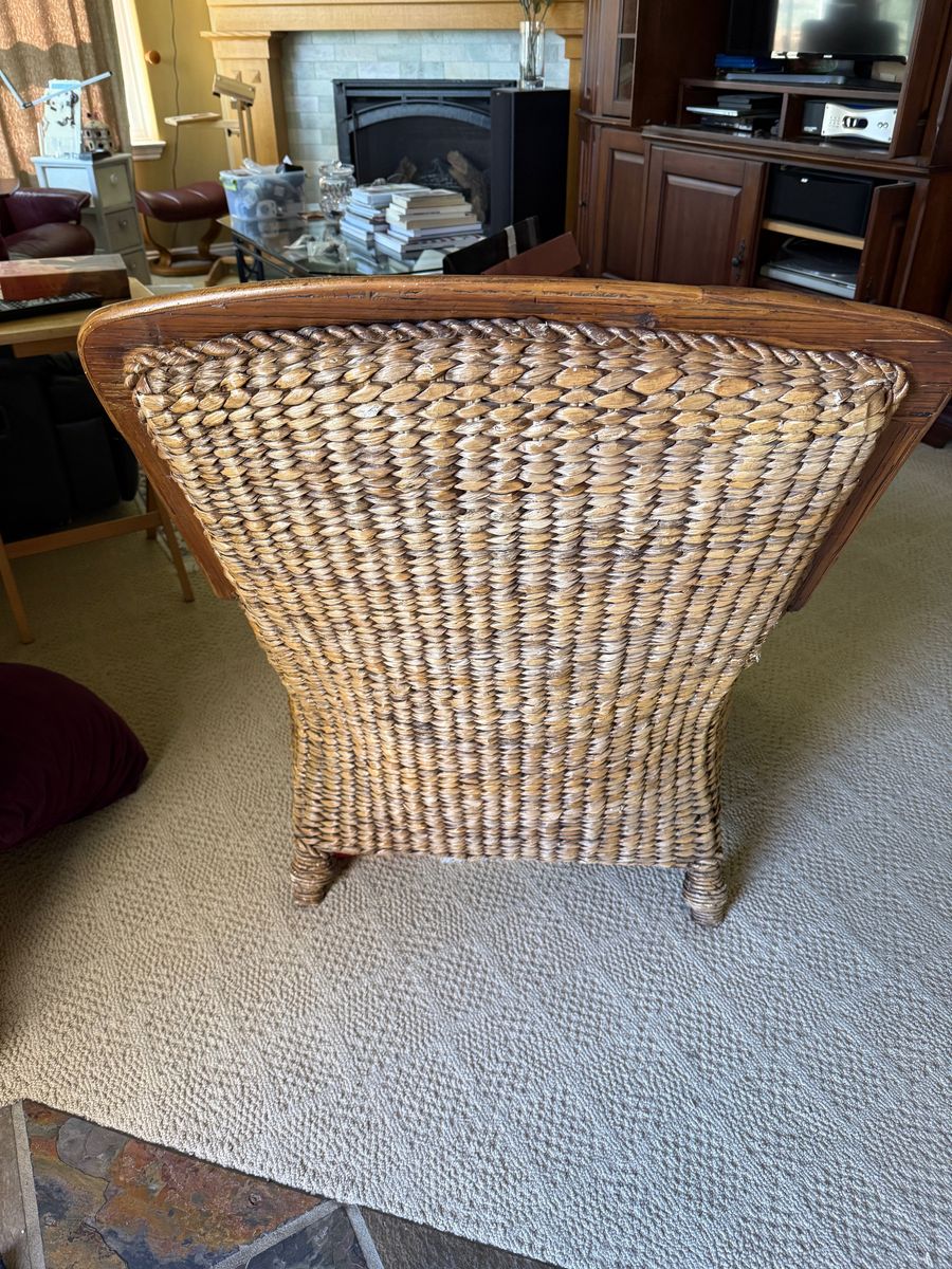 Zelle4 Comfortable wicker armchairs with cushions.