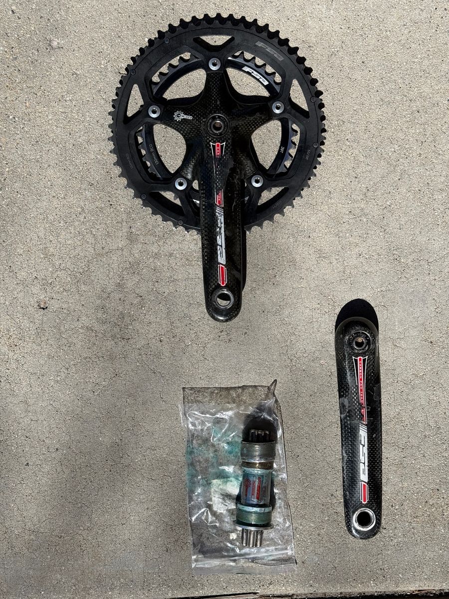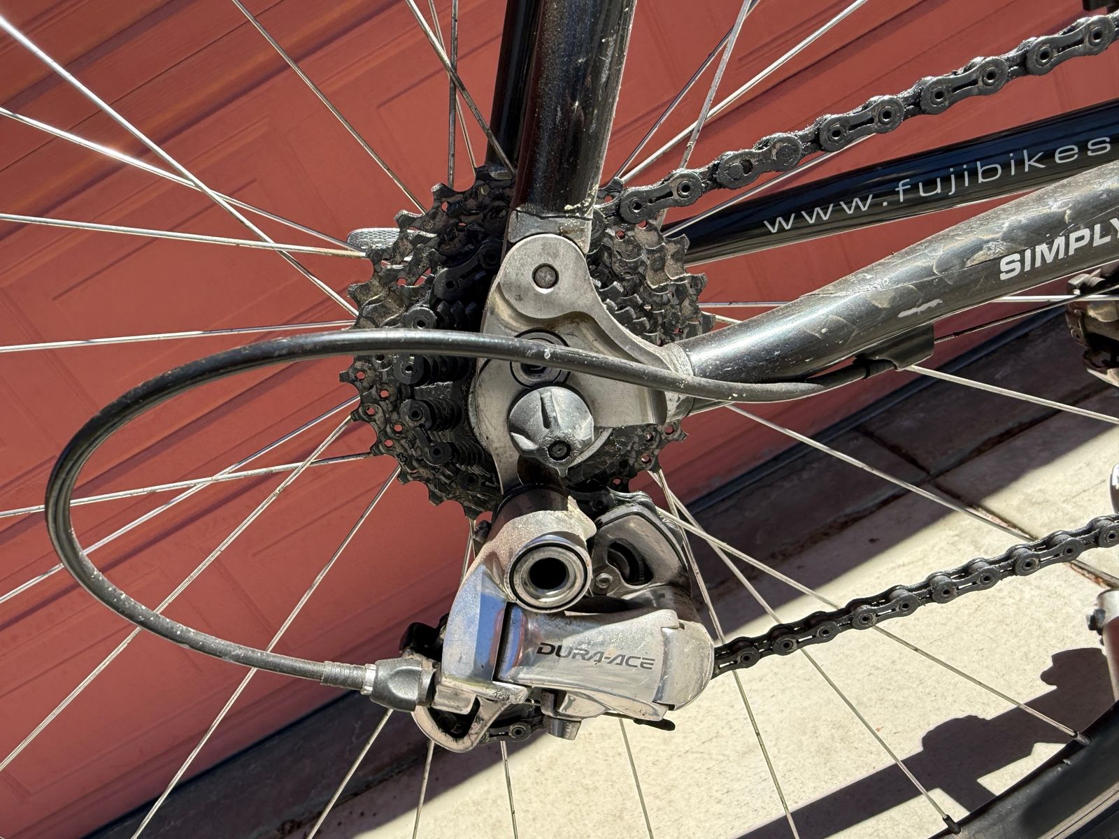 Zelle2006 High-performance Fuji road bike in excellent condition. Size 52. Shimano Dura Ace Shifters, Derailleurs, and 10s rear cassette (10-23), Ultegra brakes and compact crank. Velomax wheelset with Diamante Pro tires, FSA headset, and SPD pedals. It also includes the original FSA Carbon Cranks (53-39) which I could no longer push. Well maintained with regular services. Cat Eye computer included.