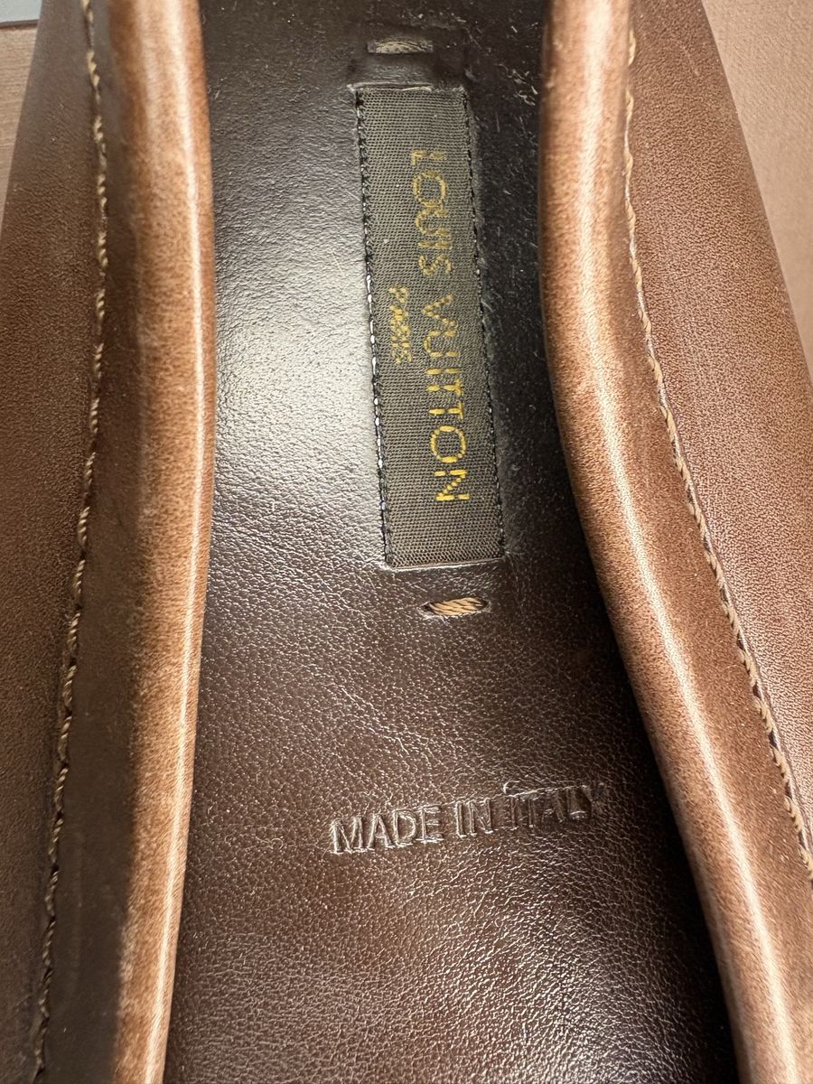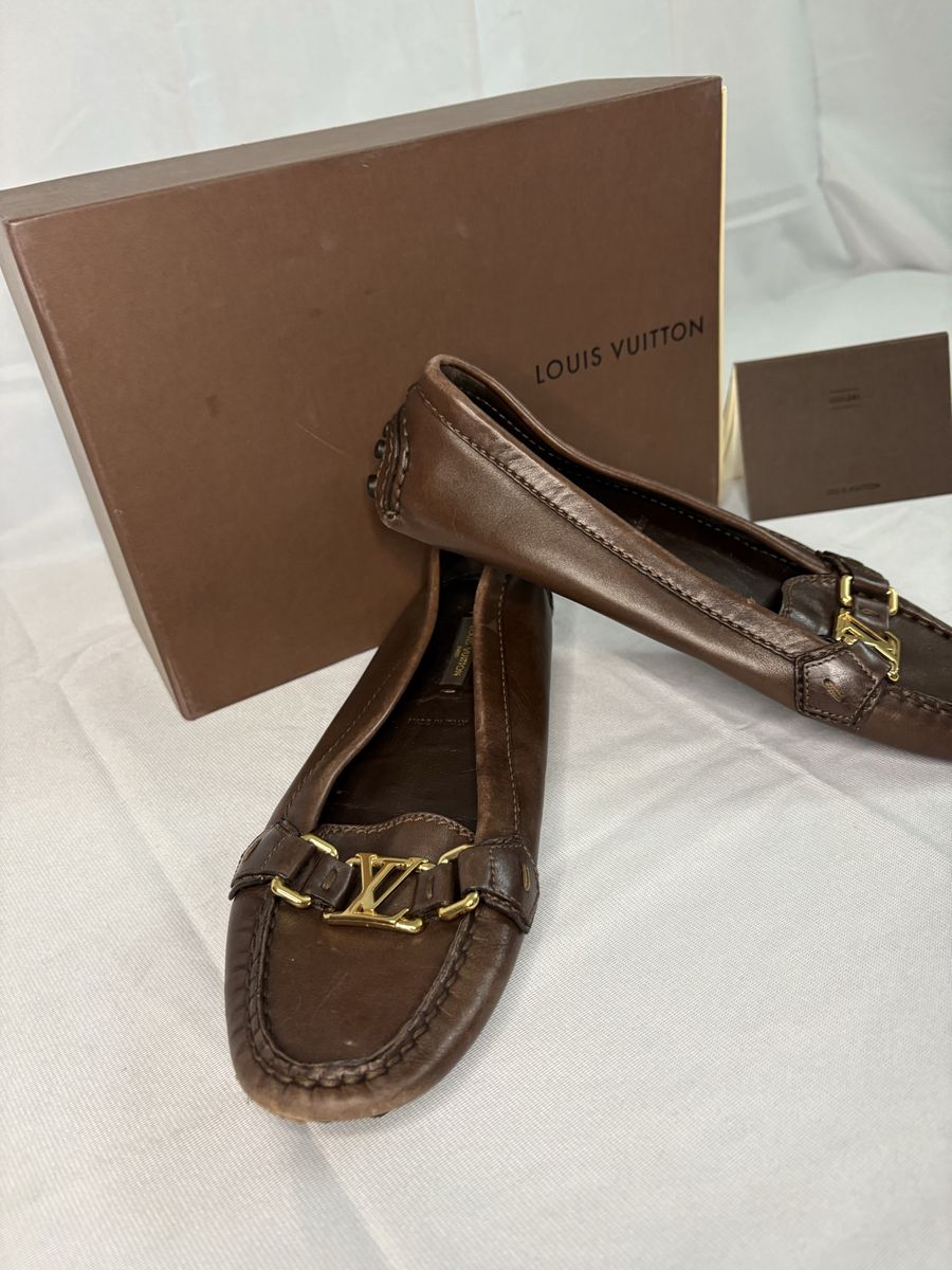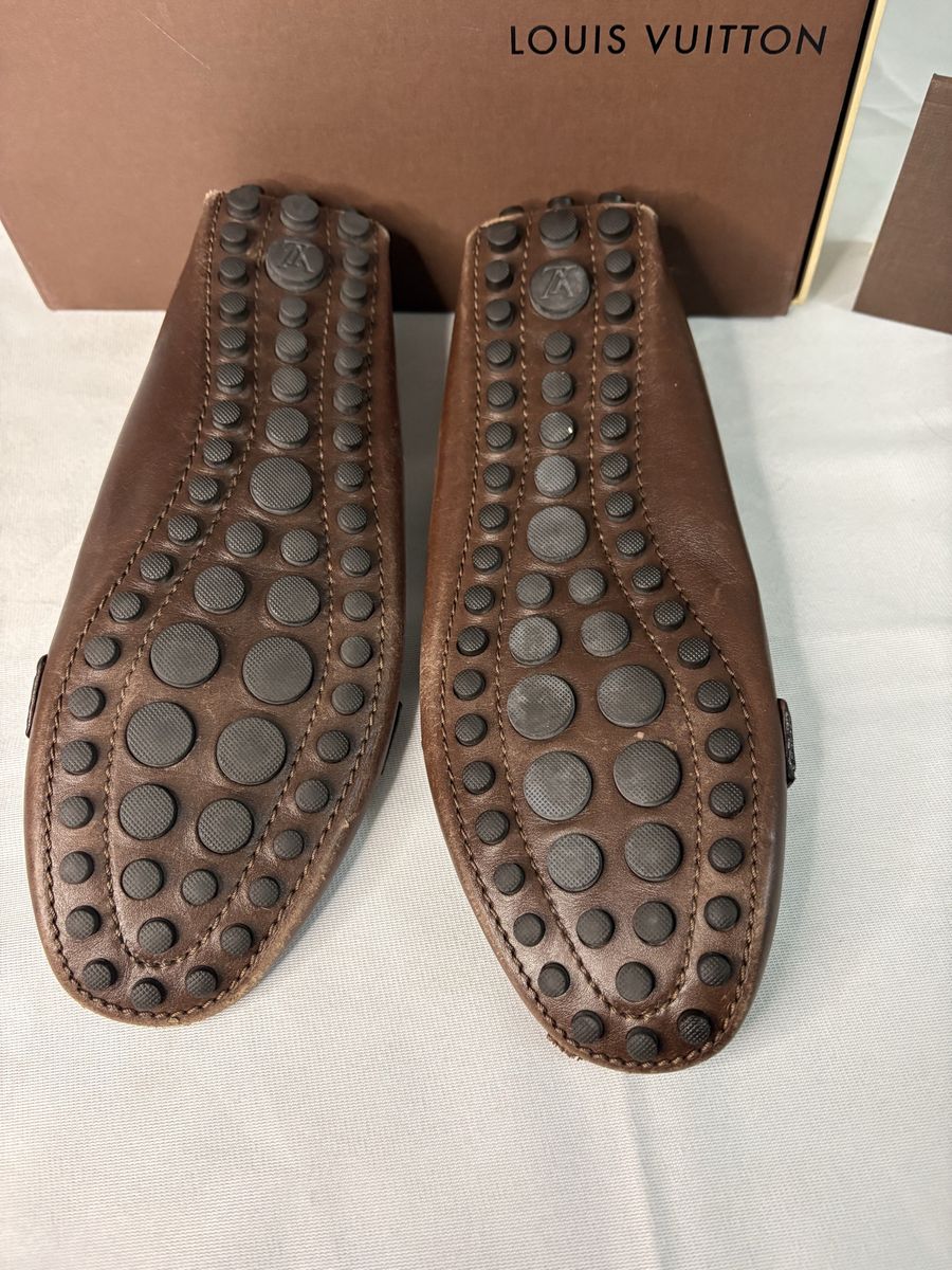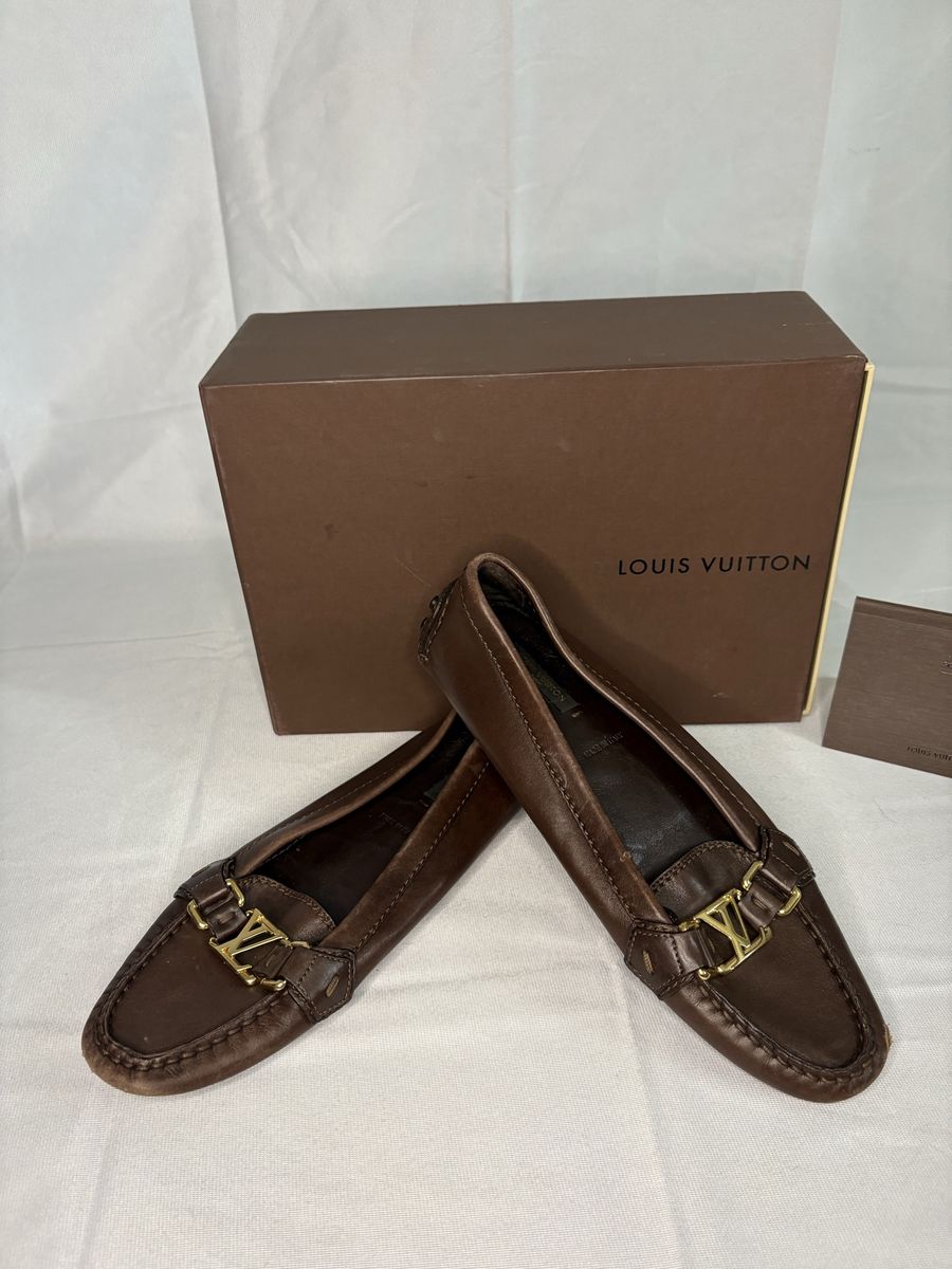 VenmoAuthentic Louis Vuitton brown leather driving loafers with gold LV hardware. Classic and timeless style. Includes original Louis Vuitton box. Previously valued by a local designer consignment boutique.