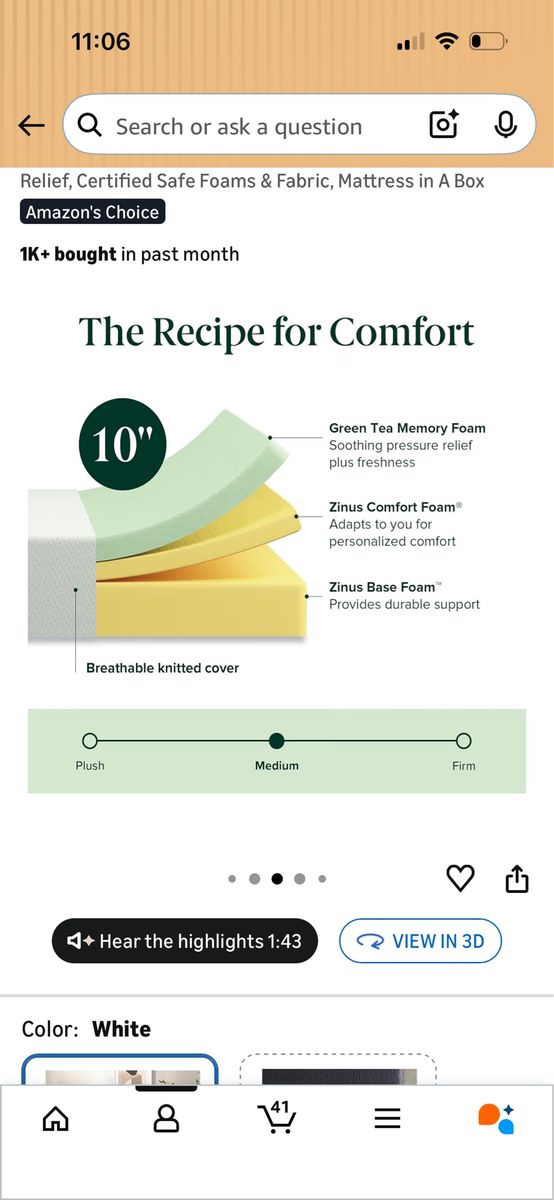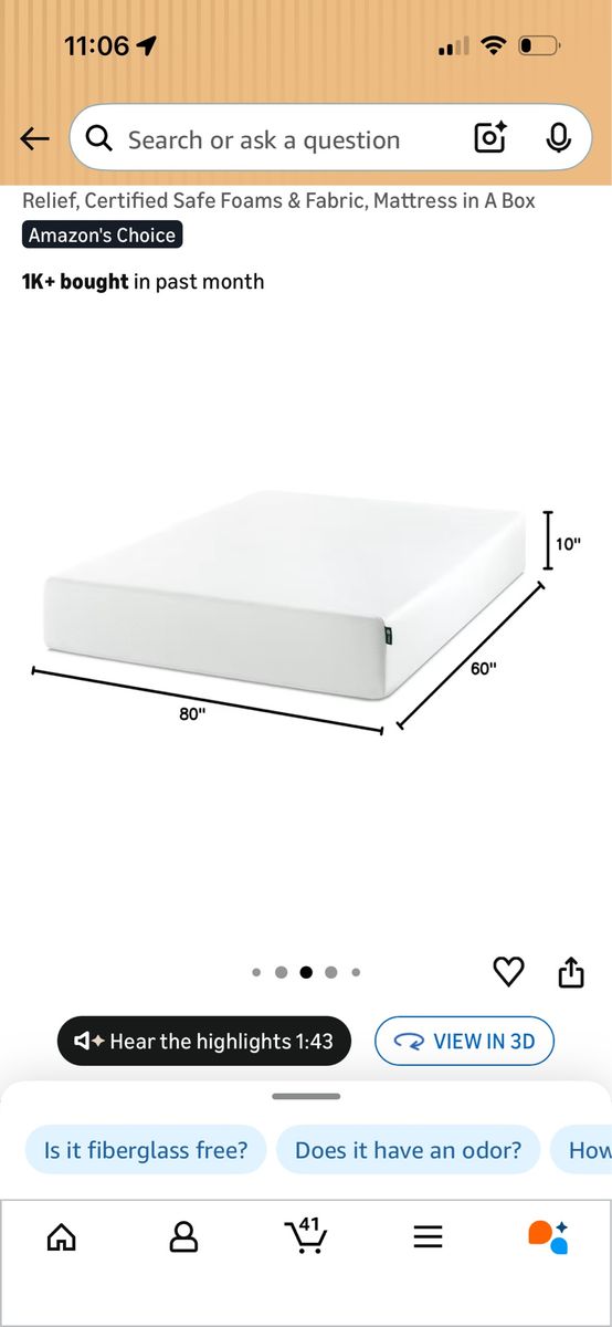 Venmo10 inch memory foam mattress! Used as a floor bed for a 3 year old! Been covered with sheets the whole time - she maybe used it about a month!