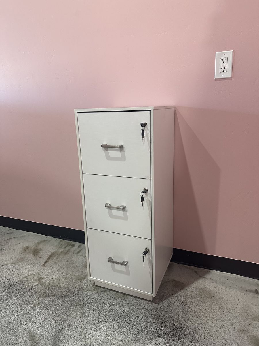 VenmoGently used receptionist/ office desk for sale with filing cabinet that matches desk $100 cabinet $50