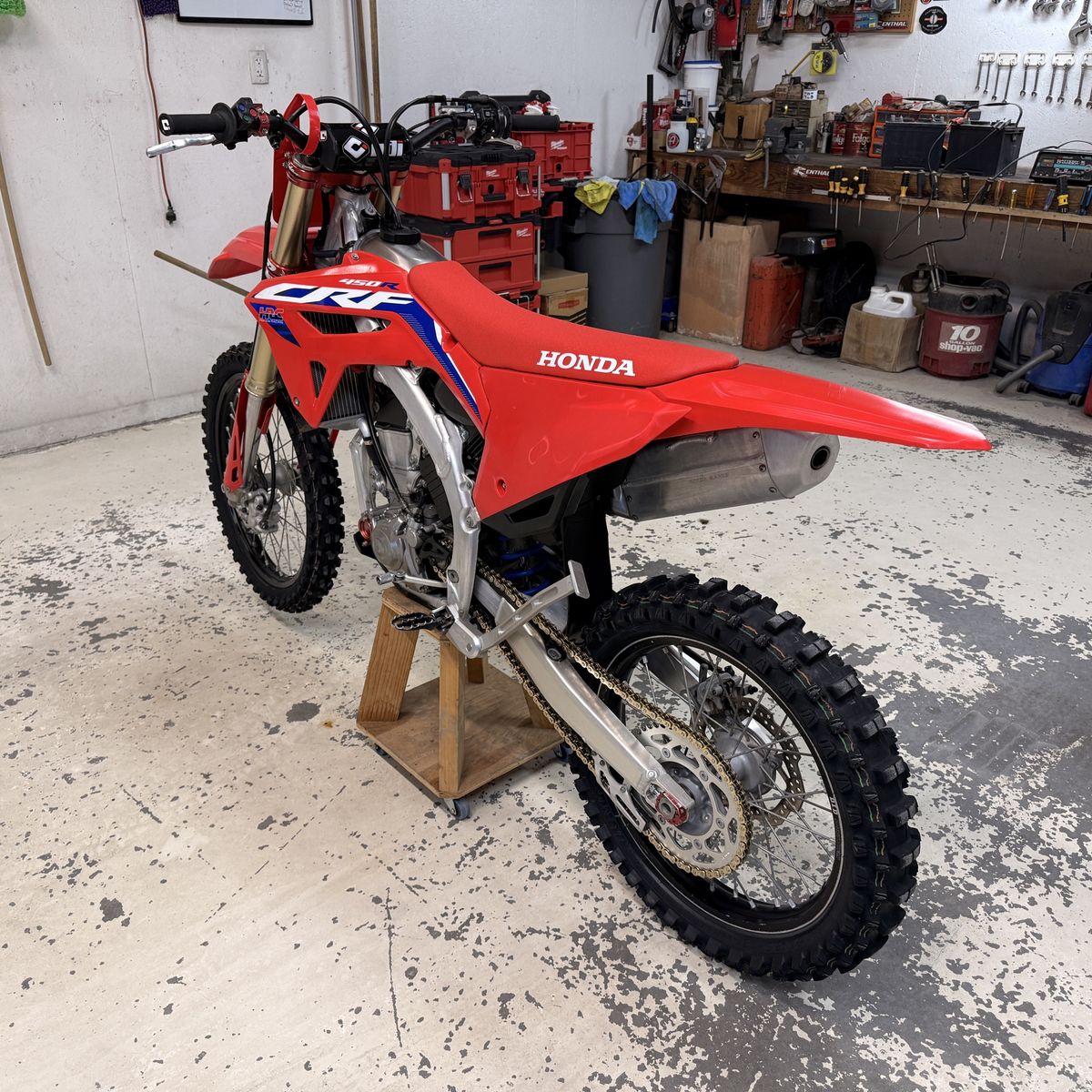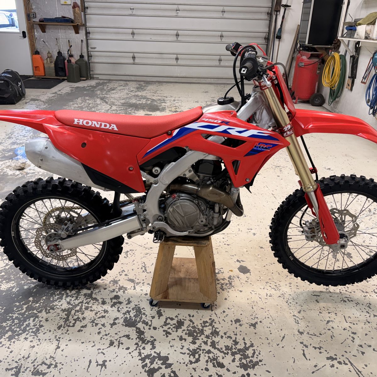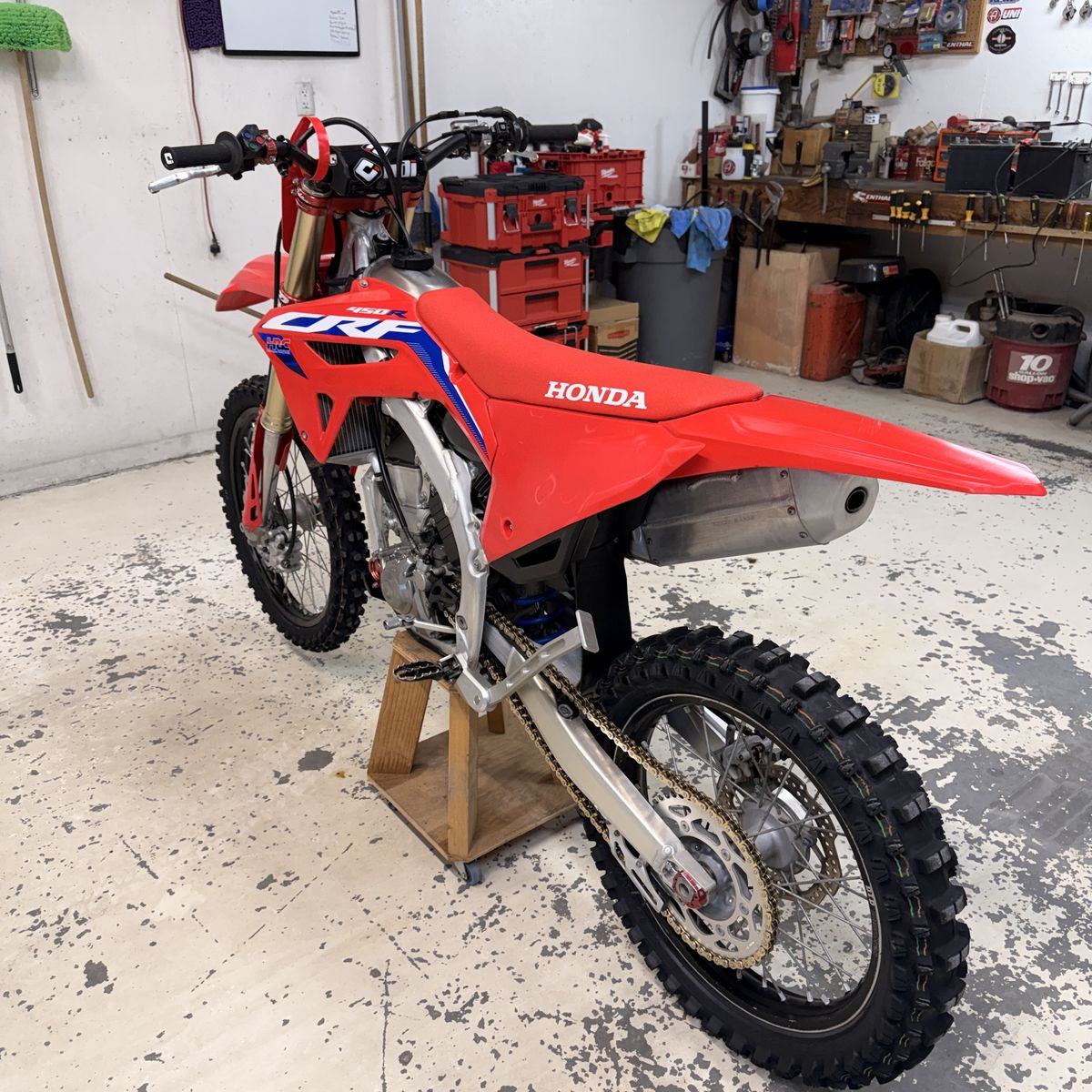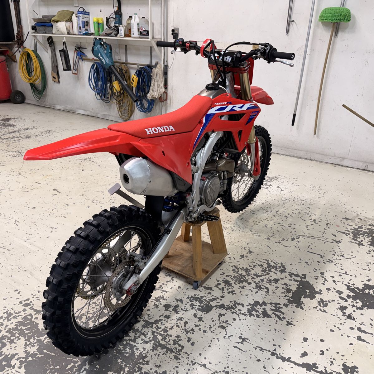 2024 Honda Crf 450R bike has 41 hours on it comes with Ride Engineering triple clamp, Fastway kickstand, race tech gold valves. Runs great no issues, just time for something different. $5,700 OBO