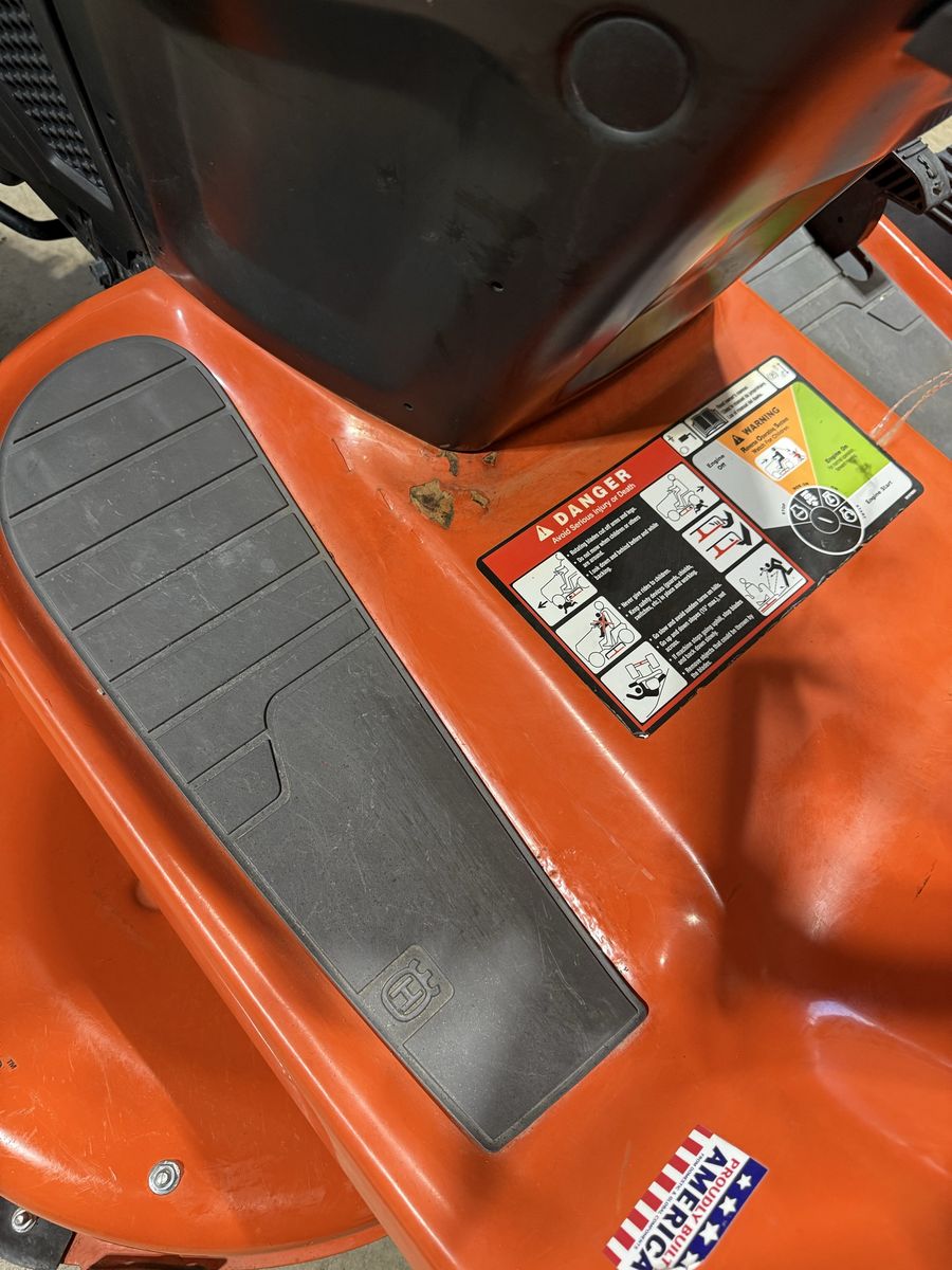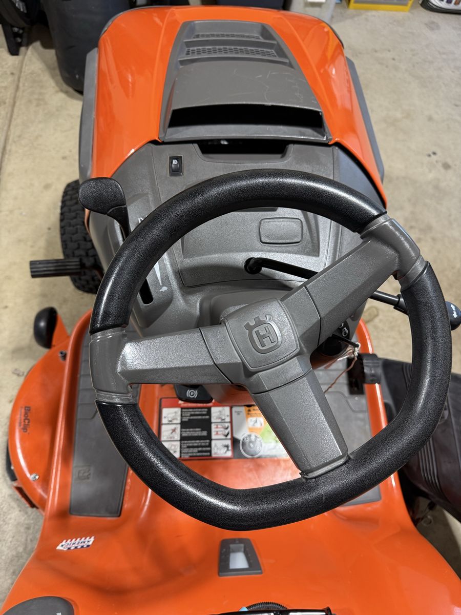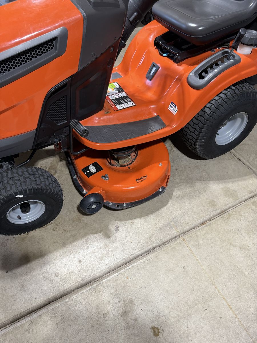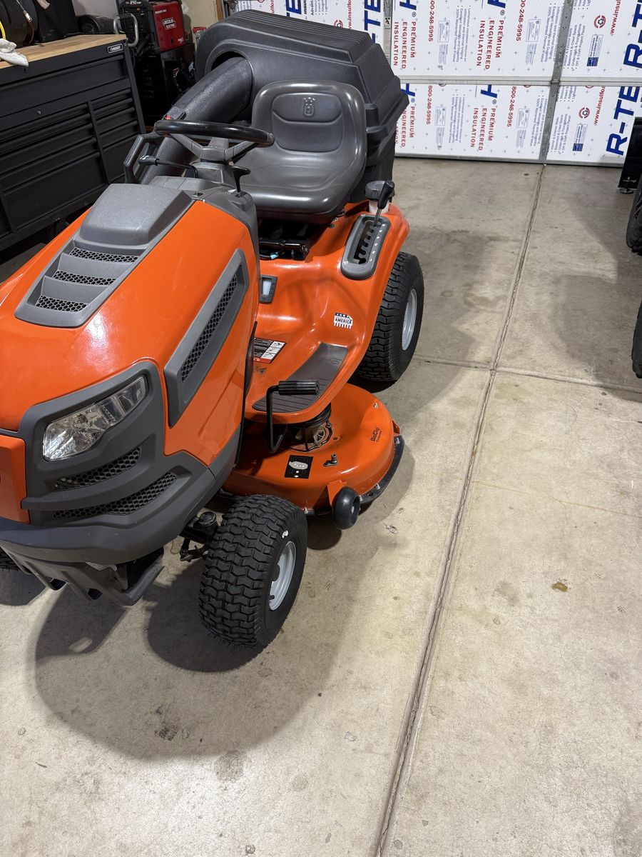 Like new Husqvarna TS120 it has a 42” deck and double bagger system. This has very little use, it’s sat under an awning cover. It does have a spot where there’s some rust because the paint chipped away I’ll include pictures of it. The tires still have the stickers, it’s in great condition. Save over $1,000+ from buying it new with the bagger system.