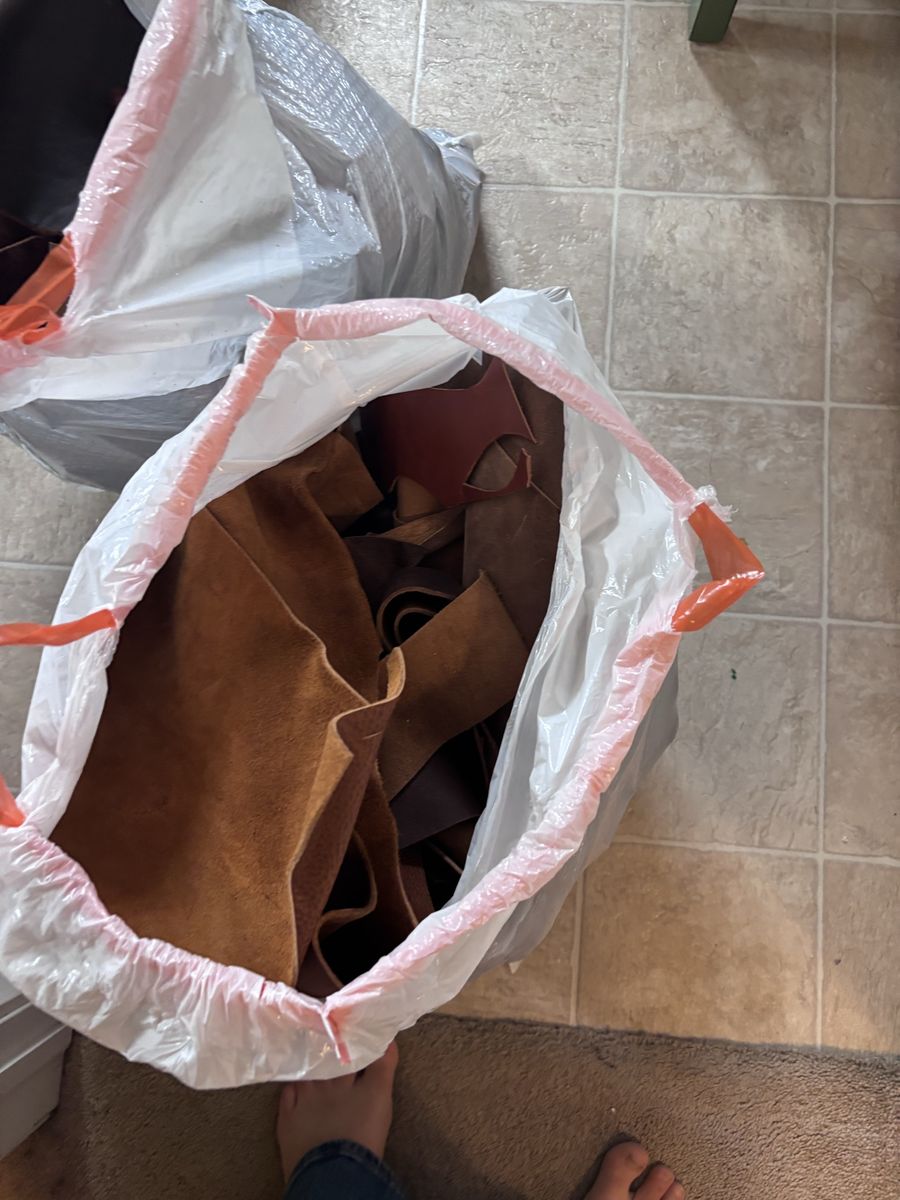 VenmoFour 13 gallon bags of various leather scraps available for all your crafting needs. All in excellent condition. Large and small pieces. Has been stored indoors. Just imagine all the things you can do with this amount of leather!