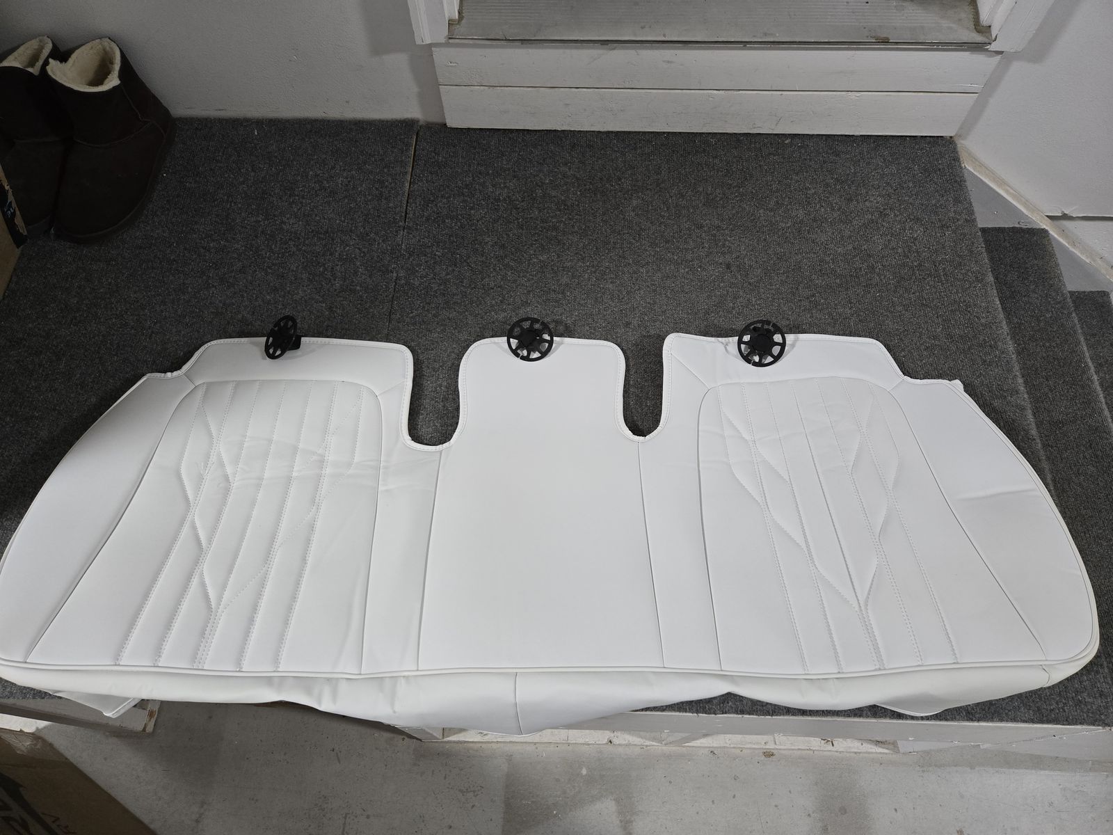 CashAppCar Seat Cover 2PCS Luxury Napa Leather Seat Covers for Tesla Model 3/Y Car Front Seat Bottom,Heavy Duty Seat Cushion Protector Without Backrest (White Front). also Car Seat Cover Luxury Napa Leather Seat Covers for Tesla Model Y Car Rear Seat Bottom,Heavy Duty Seat Cushion Protector Without Backrest (White Rear). Total 3 pieces. bottom seat only WHITE