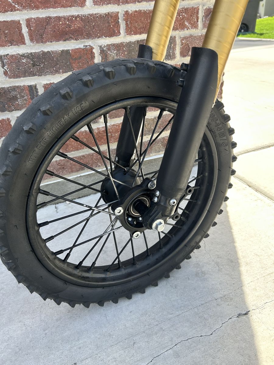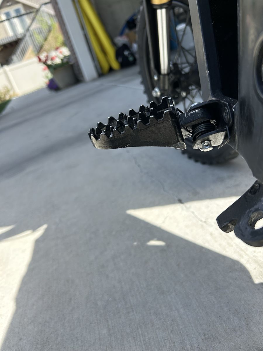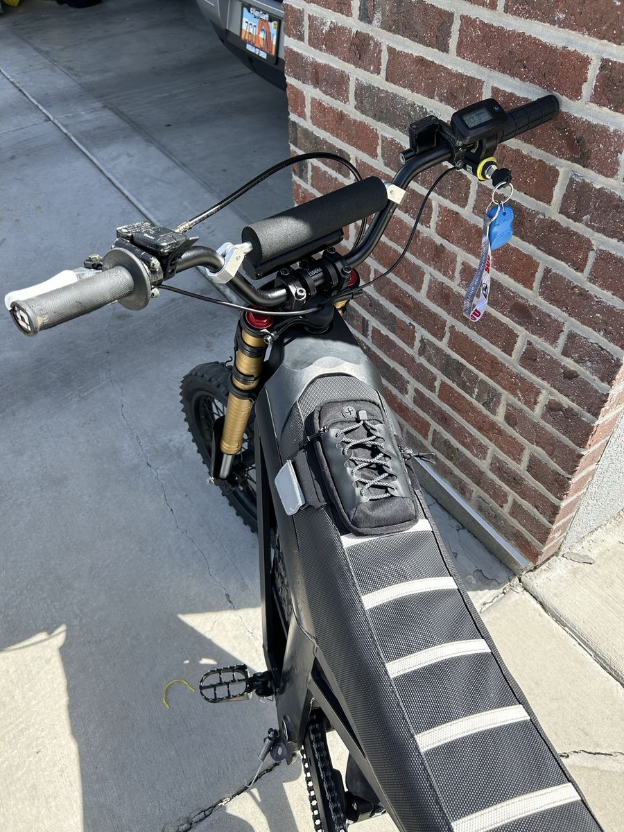 ZelleAsking $1500 Upgrades include: Handlebars battery wrap Shock cover Fork wrap Number plate Thrill seekers decal Seat cover Phone bag Brake lever covers Odi grips Headlight Blackout with spray paint and wraps Surron rear fender Front brake rotor and line included but I took it off for wheelies I’ve done 27 miles all in sport mode with 2 bars still remaining Problems- throttle is slightly broken but I’ve been using it for months and it works fine. One of the pegs is bent down slightly but all you need is a new peg bracket the actual pegs are brand new Key words: surron sur-Ron talaria tuttio super 73 Komodo ultra bee eride pro