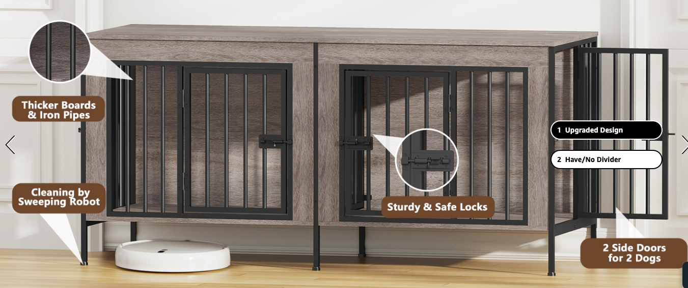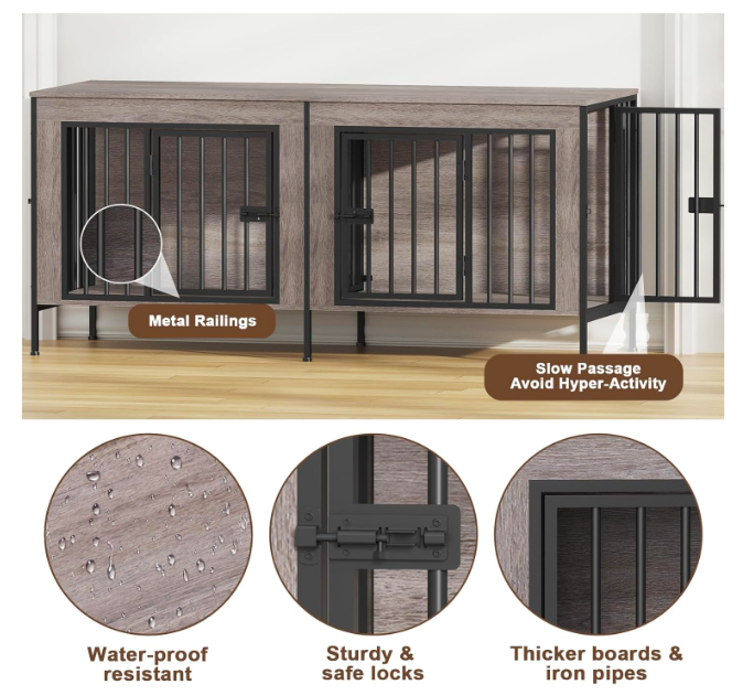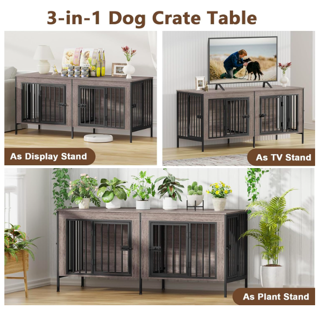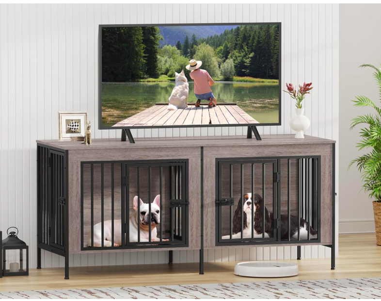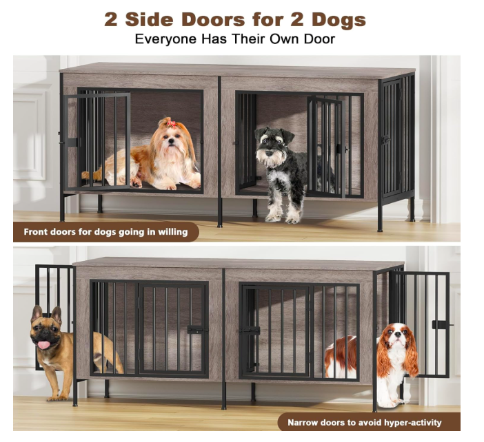 VenmoNEW IN BOX--DOUBLE DOG CRATE FOR SMALL DOGS, OAK GREY, $135. Amazon price is $199.