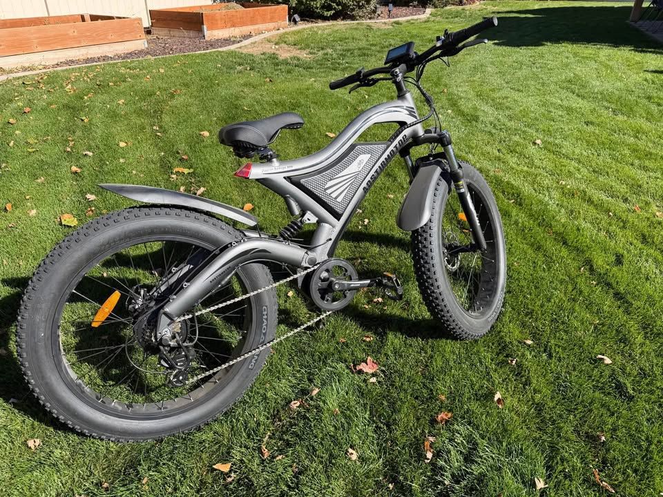 Includes 2 removable 48V 15Ah batteries. 750W motor, full suspension, 26” fat tires, 3 ride modes, 7-speed transmission, disc brakes, LCD display, and integrated front/rear lights.