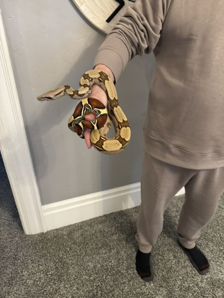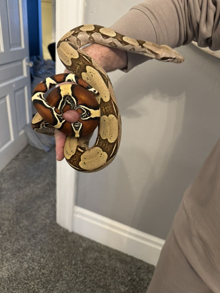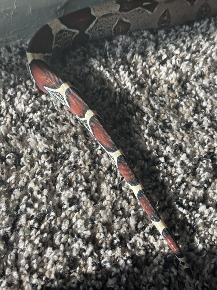 Beautiful and well-cared-for 2-year-old male Suriname red tail boa available for rehoming. This is a healthy, strong, and very manageable snake with a calm temperament, making him a great addition for someone looking for a quality boa.