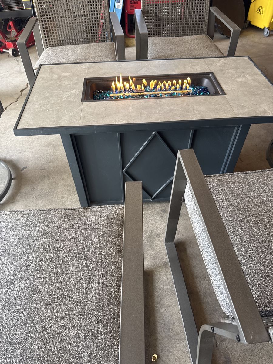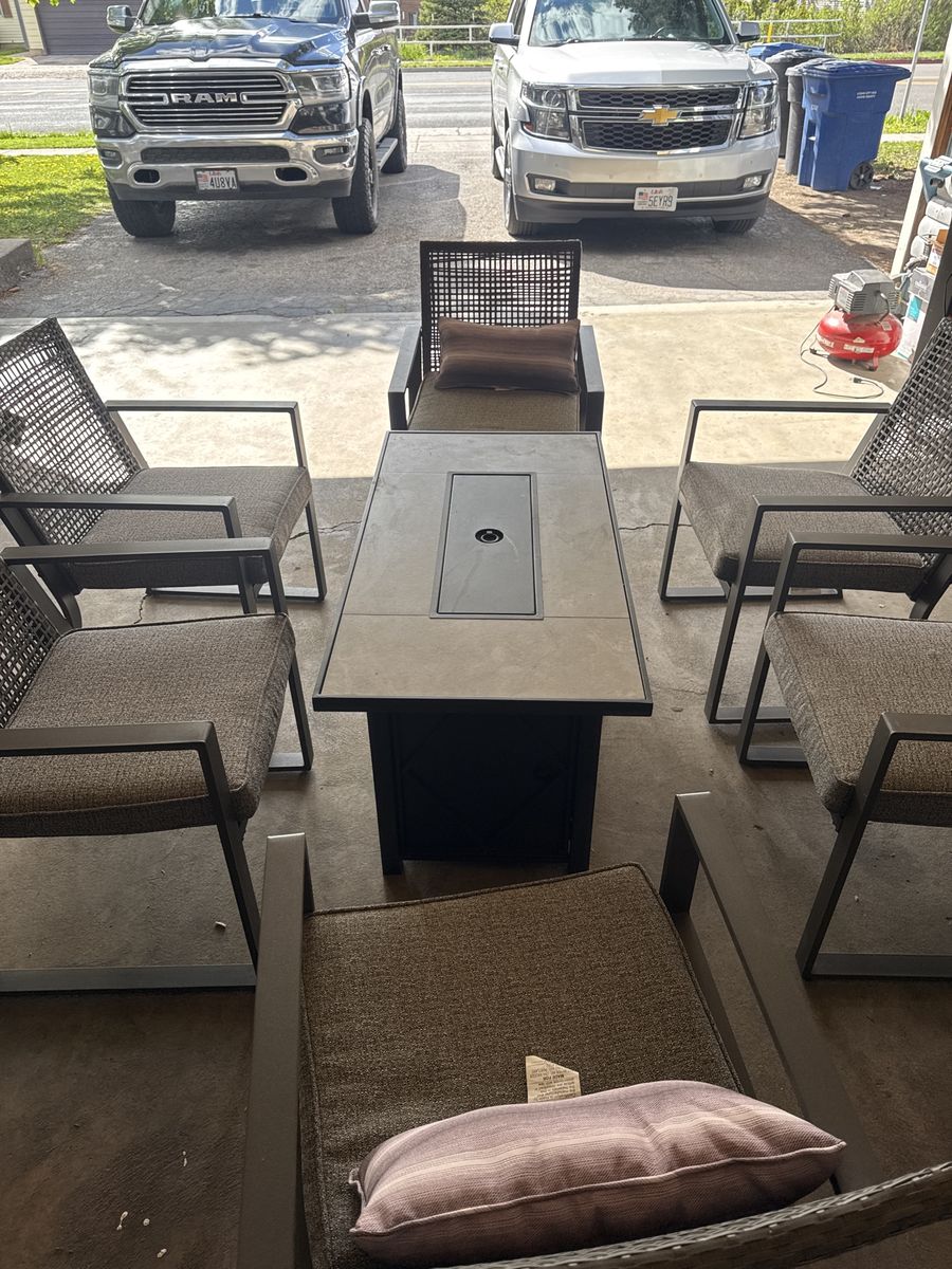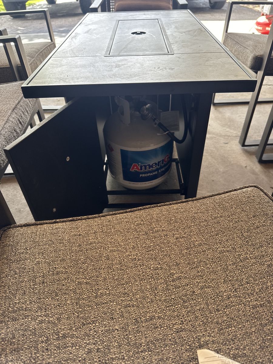 Fier Pit New never use Been istore in my Garage Price to sell Powder-Coated Steel Frame Hand woven weather - resistant resin wicker Weather- resistant solution dyed polyester fabric Out use only
