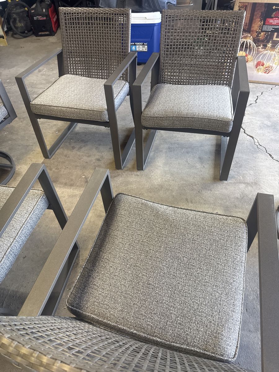 New never use Been istore in my Garage Price to sell Powder-Coated Steel Frame Hand woven weather - resistant resin wicker Weather- resistant solution dyed polyester fabric Out use only