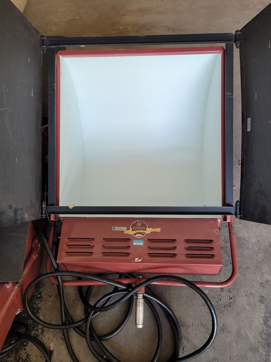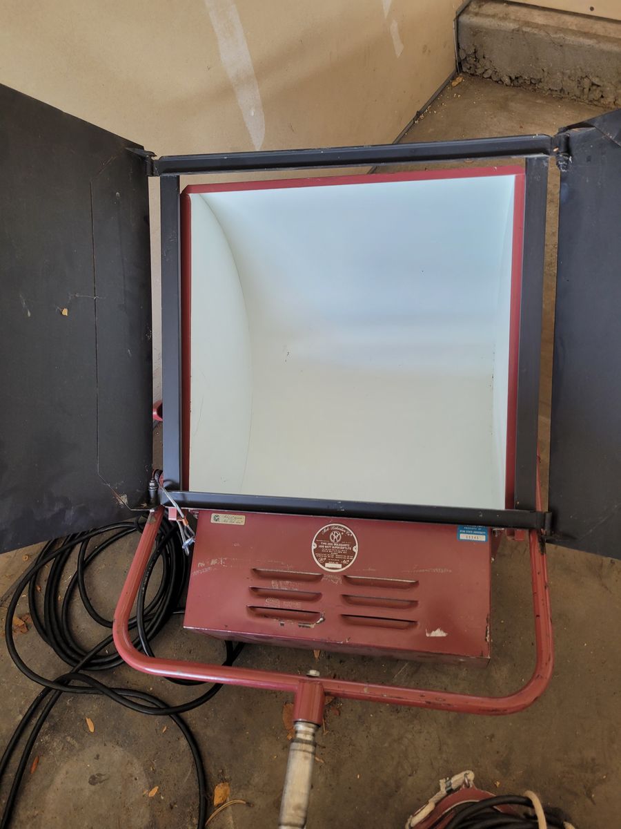 Large heavy professional lighting fixtures. Please review photos carefully for condition details. Suitable for film production, photography studios, stage lighting setups, or collectors of vintage studio equipment.
