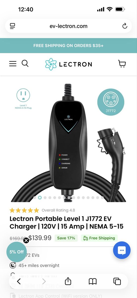 VenmoPortable Level 1 charger 15 AMP. Brand new Retails at $140
