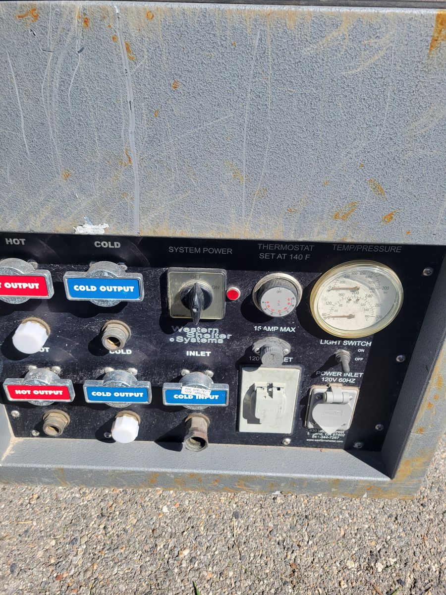 ApplePayThis is a heavy-duty Western Shelter Systems DWH-250 portable water heating unit, designed for field hospitals, emergency shelters, and remote operations. The system is built into a rugged, wheeled transport case for easy deployment. It utilizes a Beckett burner assembly for high-efficiency heating.