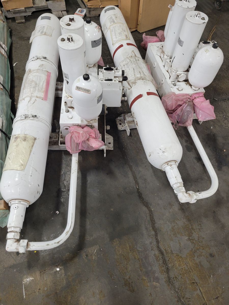 ApplePayFor sale is a lot of two (2) heavy-duty industrial hydraulic accumulator and filter station assemblies. These units are high-quality builds from Bosch Rexroth (Netherlands) featuring HYDAC filtration and pressure components. They were removed as warehouse surplus and are being sold in as-is condition.