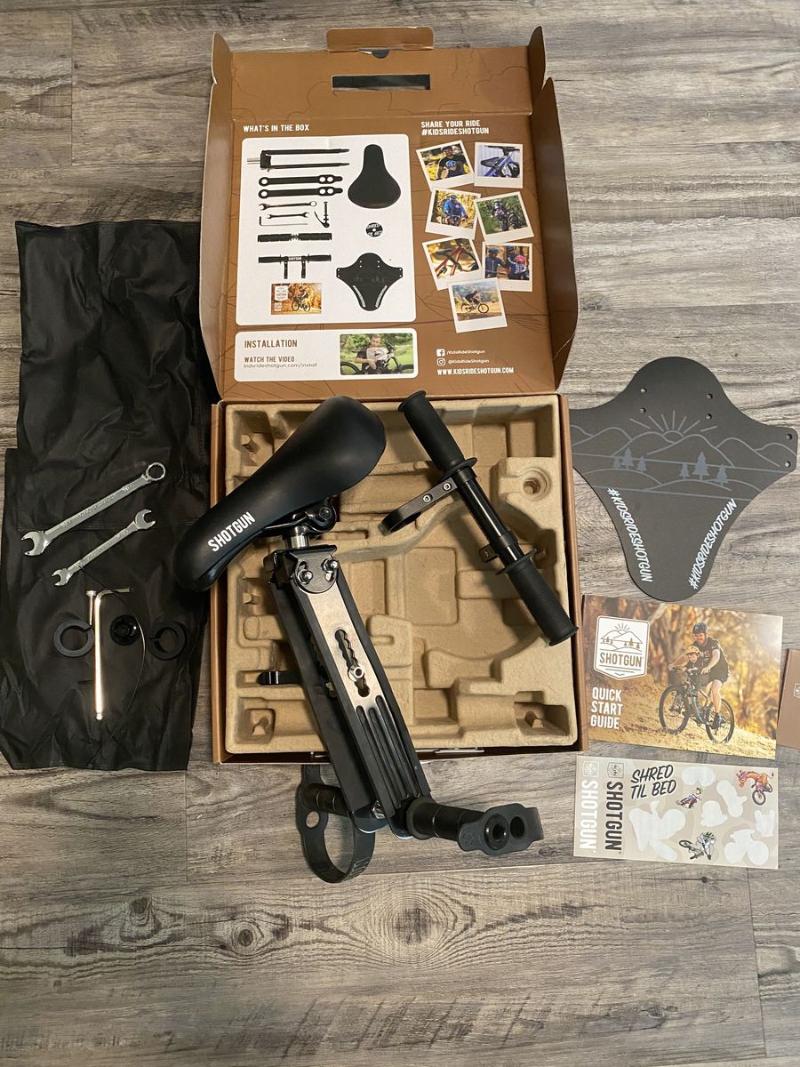 Complete set with seat, handle bars, original box and all hardware. Used this with our son and he's outgrown it.