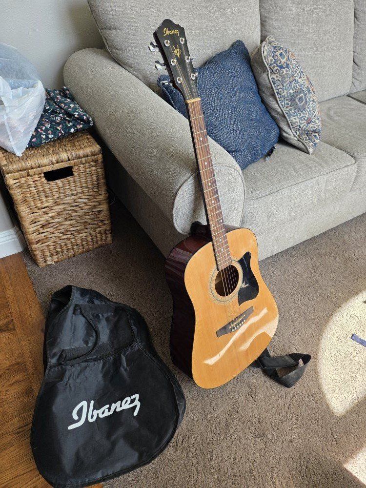 I'm selling my Ibanez acoustic guitar. I got this guitar about 8 years ago when I first started learning but have since upgraded and simply don't need it anymore. It will come with a sling, a pic, and a soft carrying case.