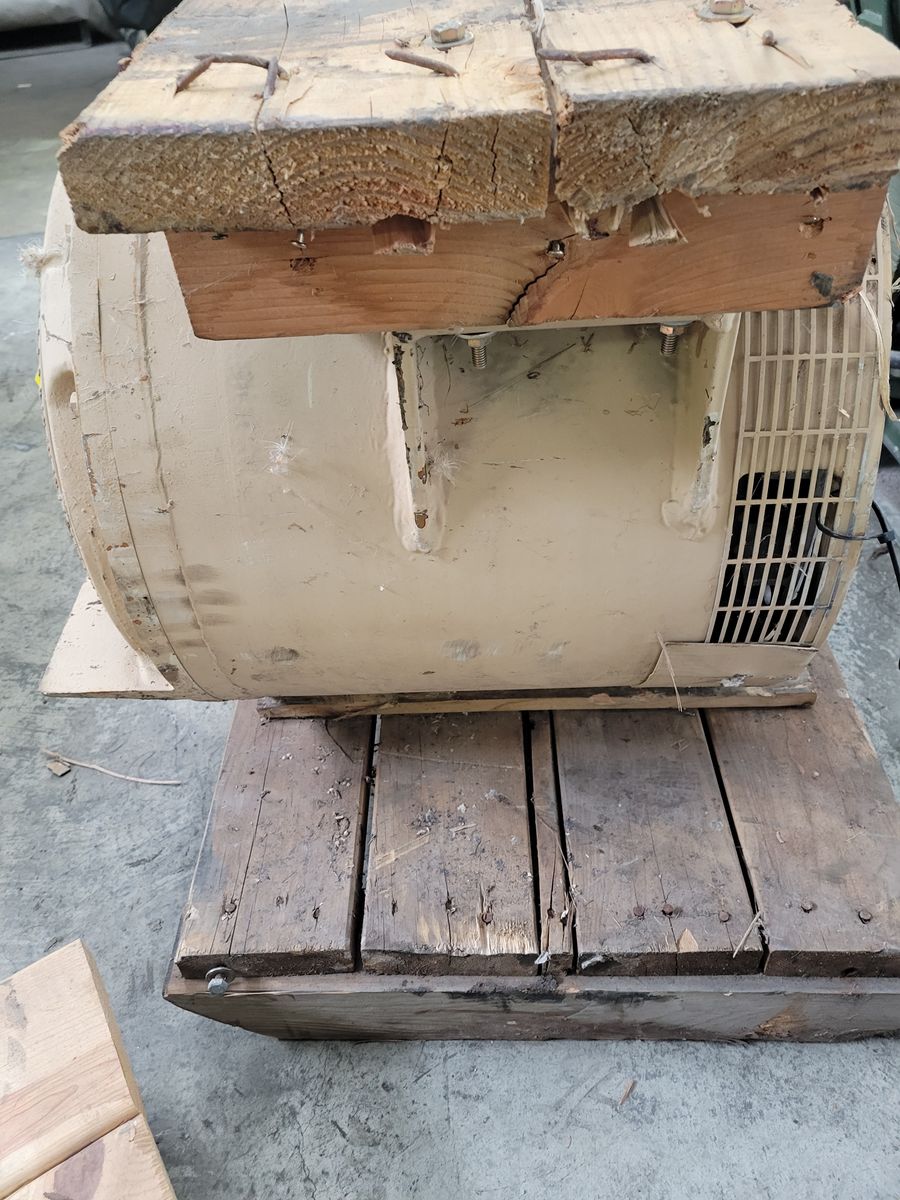 Condition: This is an industrial warehouse surplus item sold as-is. It shows cosmetic wear consistent with storage, including some surface oxidation on the mounting plate and peeling paint. The unit appears structurally sound and is currently secured to a wooden shipping frame. Perfect for backup power builds, agricultural use, or heavy industrial applications.