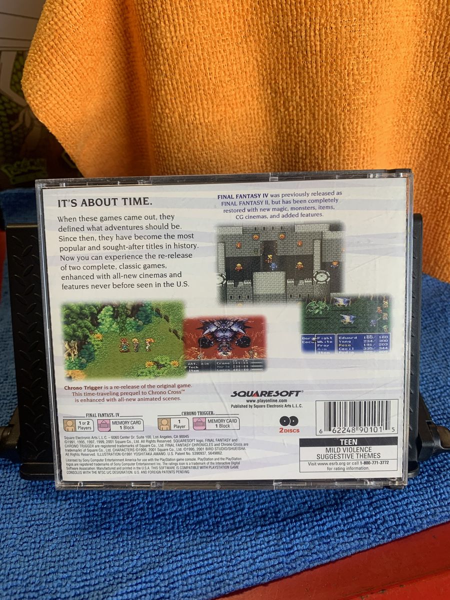 Pre-Owned, Original Final Fantasy Chronicles for the PlayStation 1. Includes Final Fantasy IV & Chrono Trigger. Wear & tear on the jewel case. I’m asking $100 cash. Open to trades of greater value. Located in Orem UT.