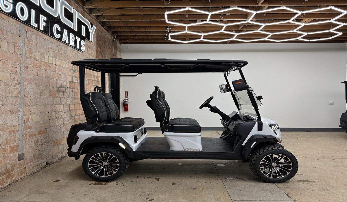 4 Passenger Premium Contoured Sears Premium Multimedia Sound System with Apple CarPlay/Android Auto Backup Camera Independent Suspension 4wheel Disc Brakes Wireless Phone Charging 72v 105amp Eco Lithium Battery