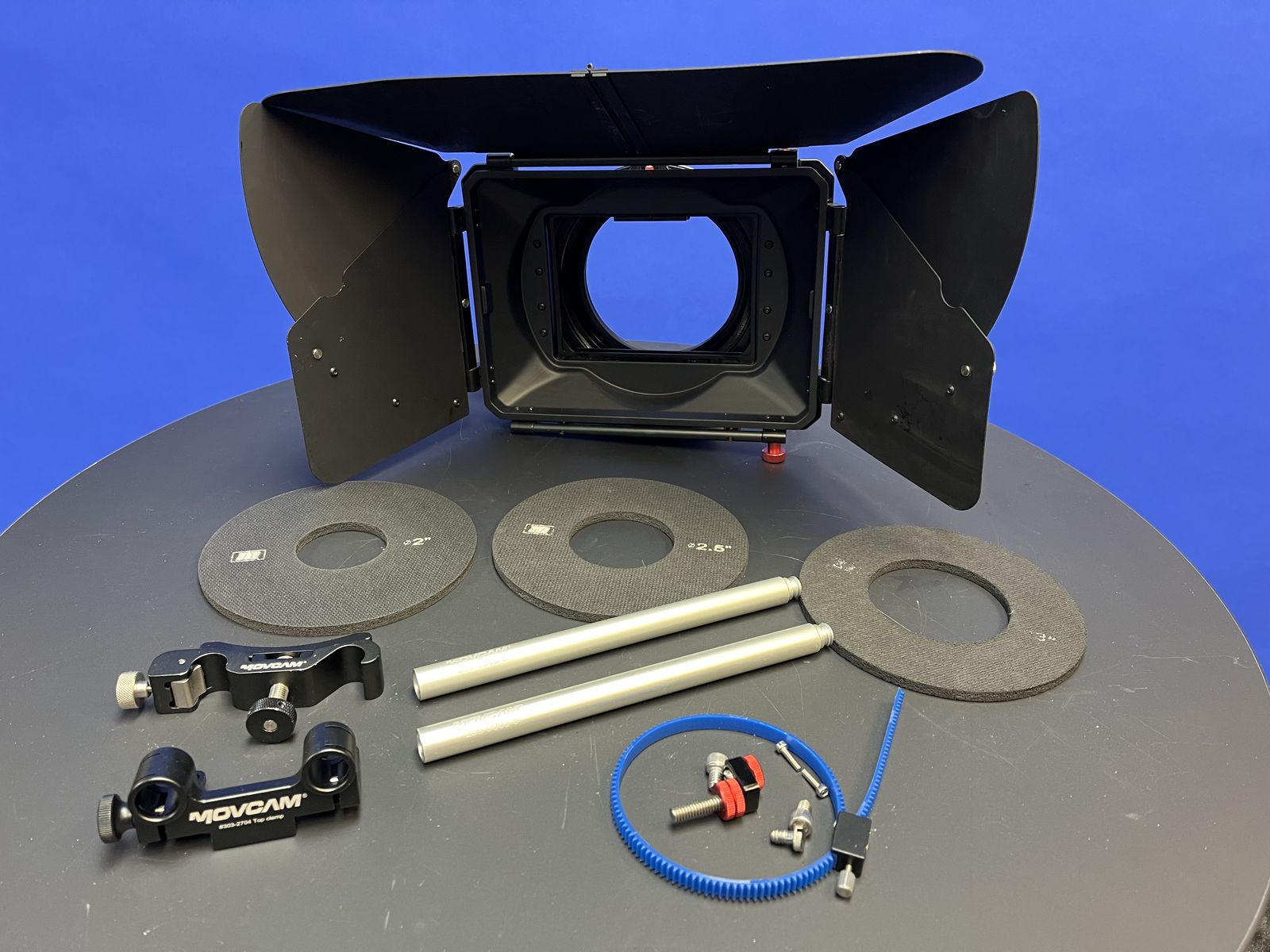 Professional film and video production mattebox system with rods and accessories. We bought this Mattebox system a few years back but have not used it much at all since we got Sony FX9s with built in ND filters. We paid about $1000 for this set up and it is in perfect working condition and looks great.