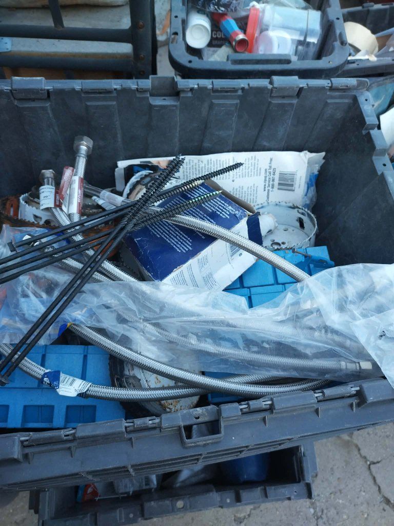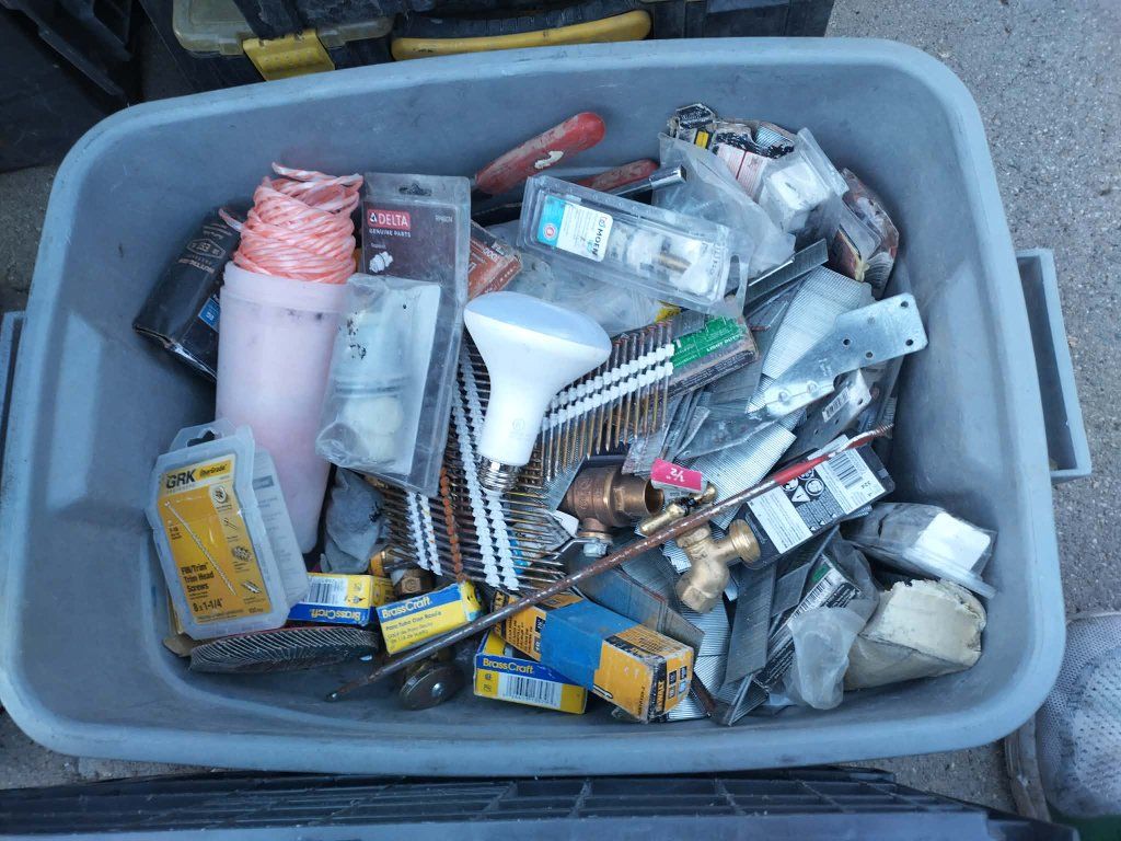 My landlord gave me an ultimatum to move my stuff out of my garage so I can park my car in the garage so my loss is your gain today only I need to sell this whole lot of everything for 250 bucks otherwise I'm just going to haul it all to storage today and break it into smaller lots and sell it individual smaller lots on Ebay THERE ARE $2,500 in remodeling electrical plumbing heating and AC framing and campentry parts and tools there