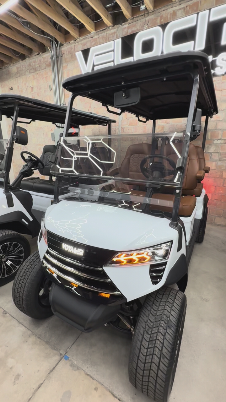 4 Passenger Premium Contoured Sears Premium Multimedia Sound System with Apple CarPlay/Android Auto Backup Camera Independent Suspension 4wheel Disc Brakes Wireless Phone Charging 72v 105amp Eco Lithium Battery