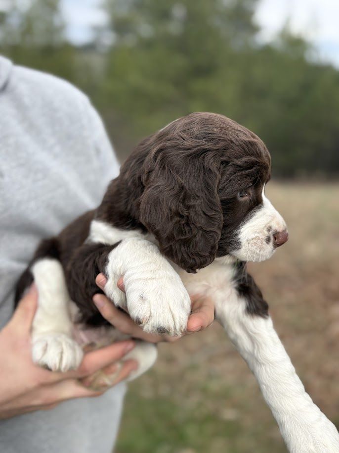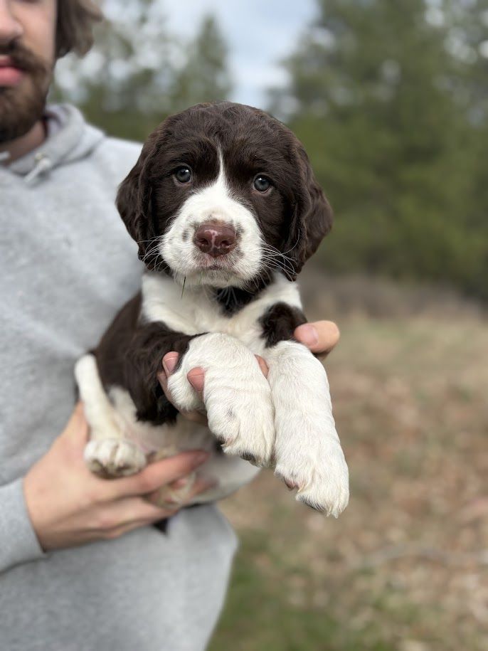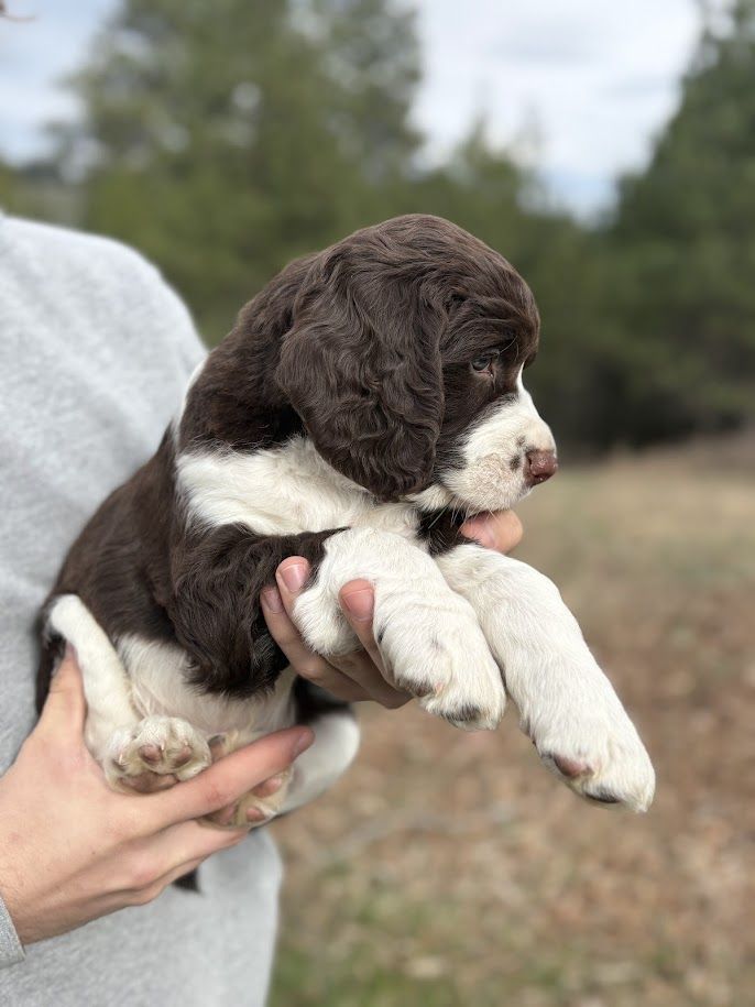 Born February 10, 2026, this 8‑week‑old male Springer Spaniel is the last of his litter and truly something special.