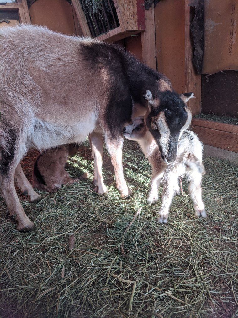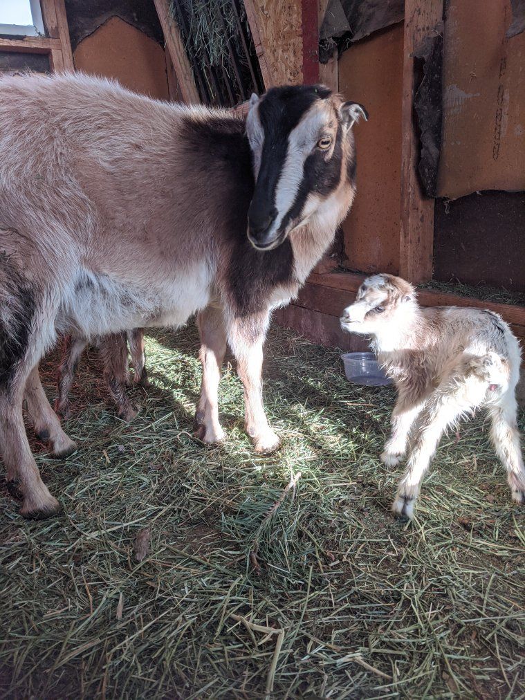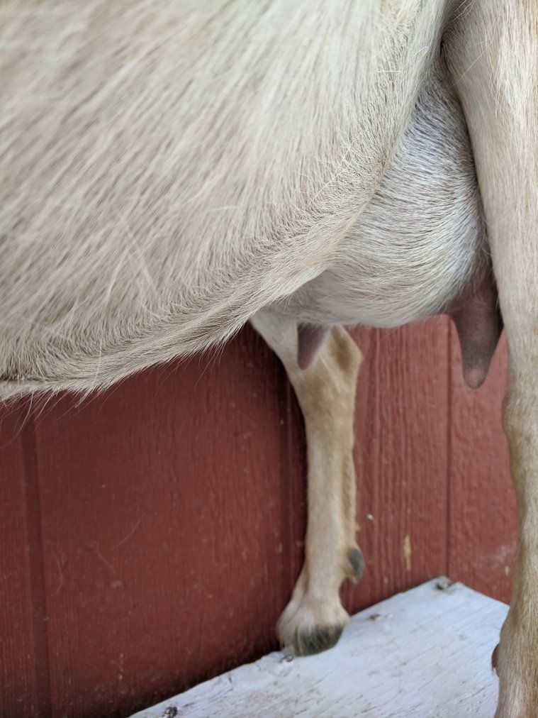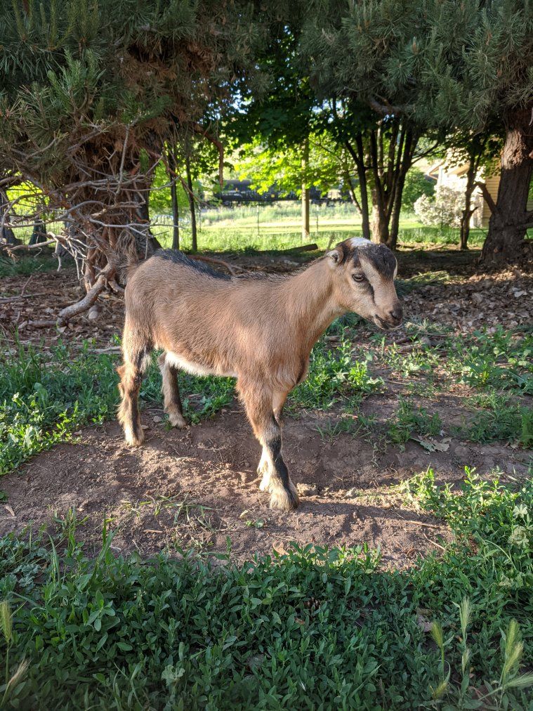 I am hesitant to sell our beautiful doe but I started out wanting just a few goats and now have 6🫣 I am keeping this doe's beautiful little doeling she had last spring. This is Indigo and she's out of Blue Bell, a standard Lamancha doe from Sandstone Ridge and Onaqui Nigerian Dwarf Buck. Last year was her first kidding and she had two beautiful, healthy, kids, a doeling a buckling. Indigo kidded beautiful with no assistance. The last few photos are of Indigo with her doeling and buckling. She produced some gorgeous kids! She produced a ton of milk for her first freshening so the next time she's bred will be even better! She has a beautiful utter that is easy to hand milk! Her milk tastes amazing as well! If you are looking for a solid goat with great production and great tasting milk, Indigo is your girl! She absolutely has to go to a good home with adequate space and shelter with at least one other goat. I am in no hurry to sell her and will make sure she has a great life after she leaves our homestead. I am also listing a Nigerian Dwarf Doe and they can go together for $800. Message me on here with questions!