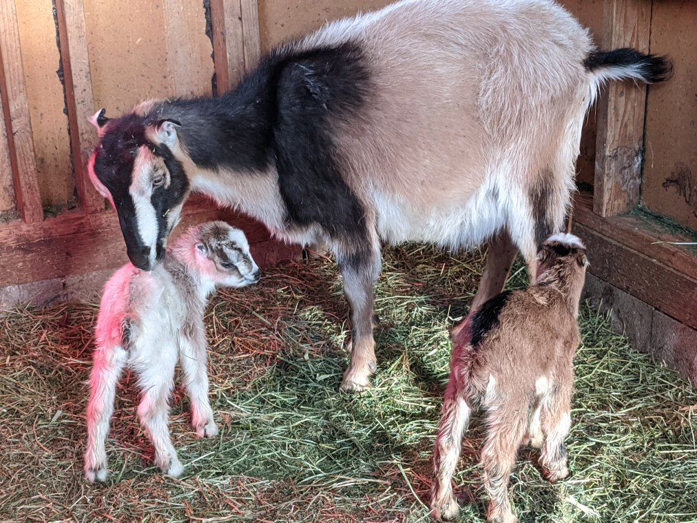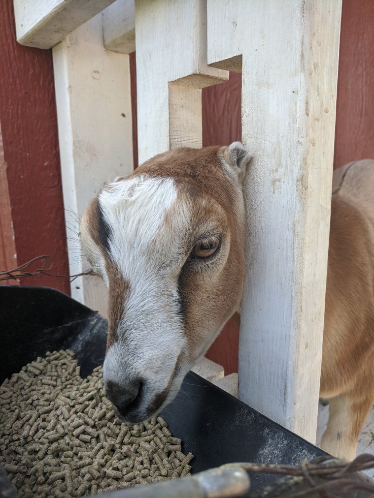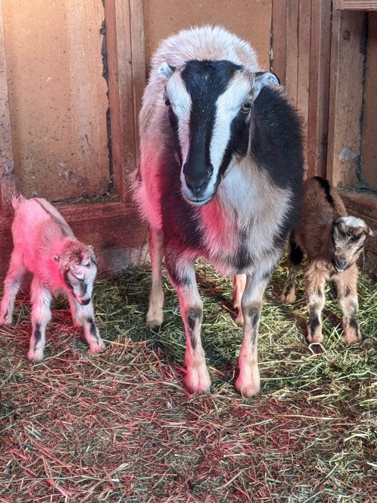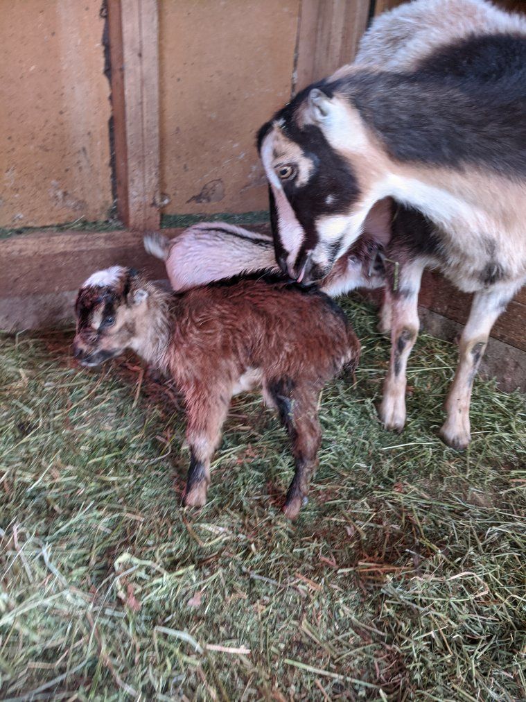 I am hesitant to sell our beautiful doe but I started out wanting just a few goats and now have 6🫣 I am keeping this doe's beautiful little doeling she had last spring. This is Indigo and she's out of Blue Bell, a standard Lamancha doe from Sandstone Ridge and Onaqui Nigerian Dwarf Buck. Last year was her first kidding and she had two beautiful, healthy, kids, a doeling a buckling. Indigo kidded beautiful with no assistance. The last few photos are of Indigo with her doeling and buckling. She produced some gorgeous kids! She produced a ton of milk for her first freshening so the next time she's bred will be even better! She has a beautiful utter that is easy to hand milk! Her milk tastes amazing as well! If you are looking for a solid goat with great production and great tasting milk, Indigo is your girl! She absolutely has to go to a good home with adequate space and shelter with at least one other goat. I am in no hurry to sell her and will make sure she has a great life after she leaves our homestead. I am also listing a Nigerian Dwarf Doe and they can go together for $800. Message me on here with questions!