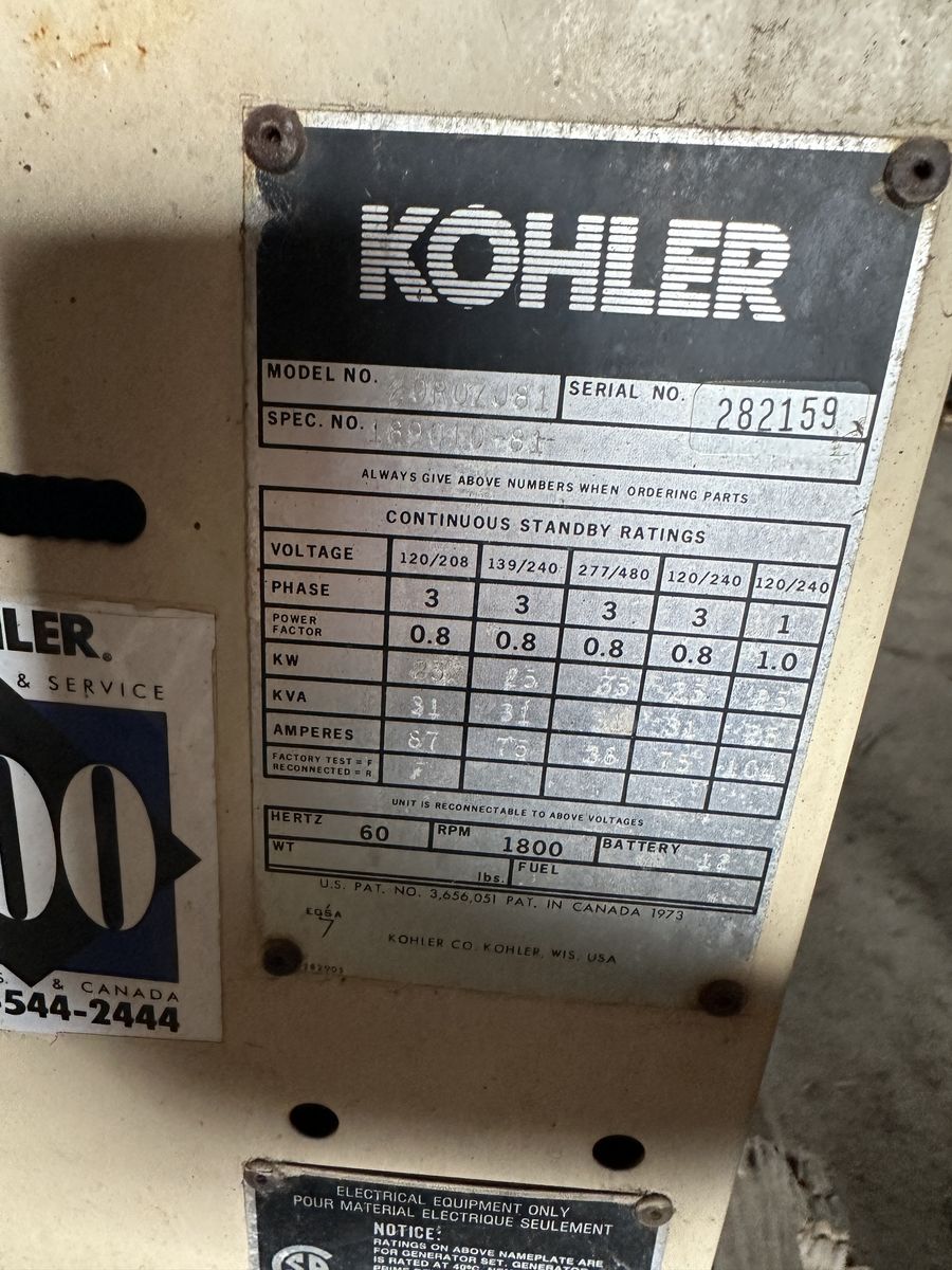 VenmoKohler 25kW Industrial Generator – 3 Phase 1800 RPM Diesel – Enclosed Unit