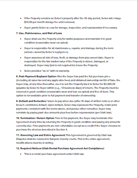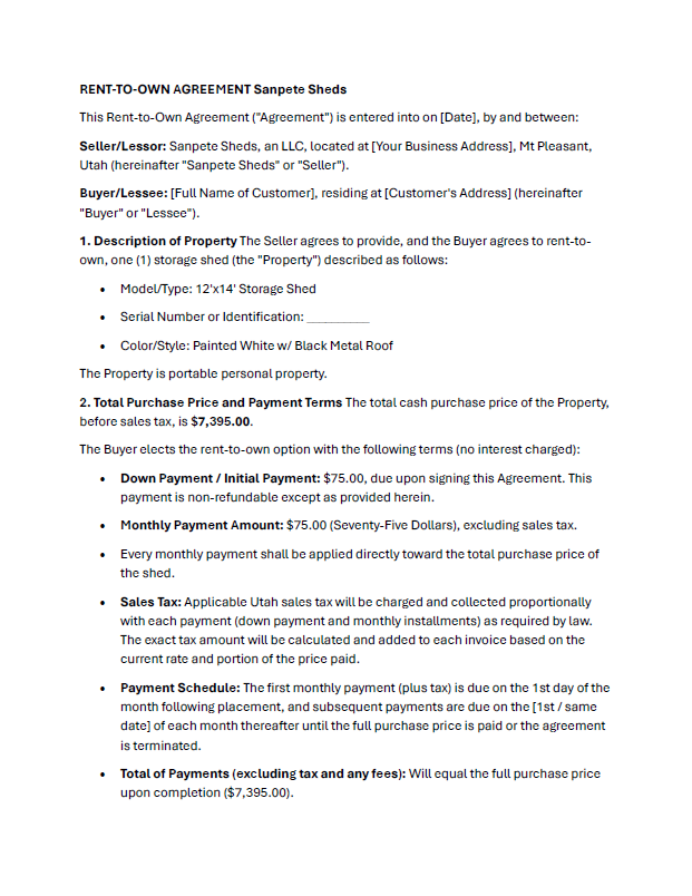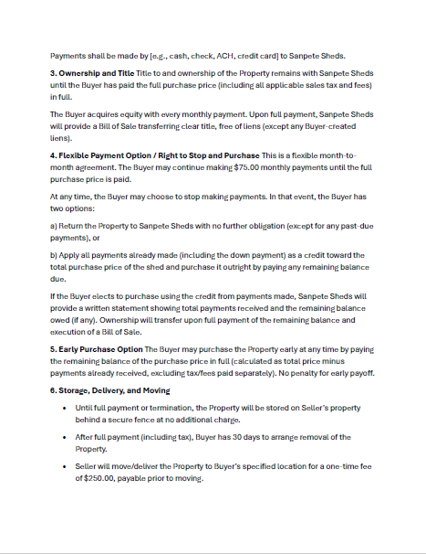 Rent to Own your own Storage shed! Tired of wasting money on a storage unit? Start owning your own! We aren't renting storage units we are selling them! But you are still paying less than you would on a storage unit and you are working toward owning it!