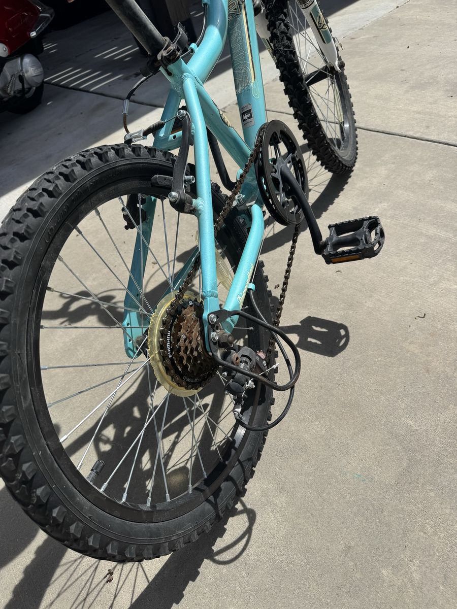 Purchased from REI originally, used but in good shape. 7 speed, has grip shift. One tire was chewed on by our dog (see picture). Ready to ride