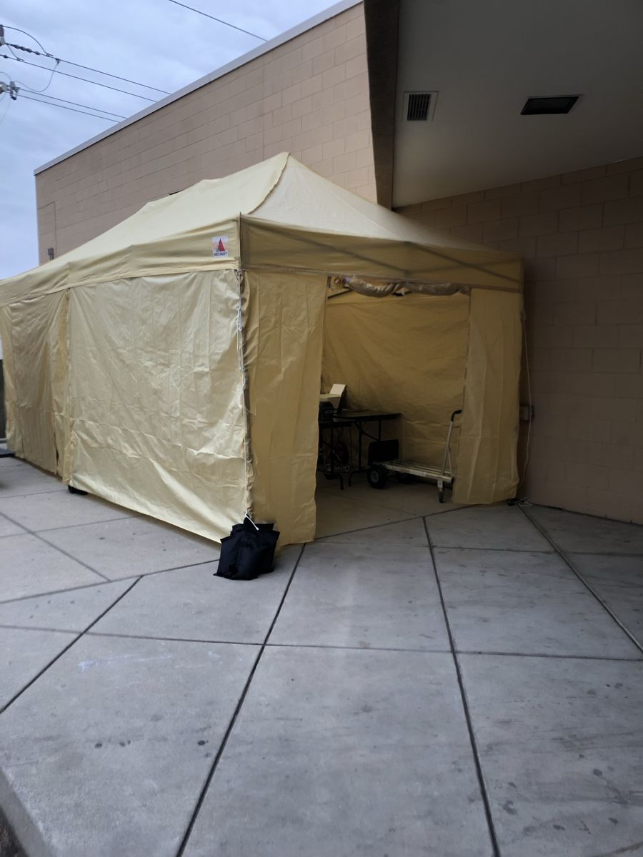 VenmoI purchased this canopy in 2021. It has a pop-up frame that can be easily set by two people. It has two zipper doors and two windows. The doors and windows can be placed in any section of the canopy. I no longer need it for my business. The rolling case shows some wear but the canopy is in good condition. I paid $470 new I am asking $150 obo.