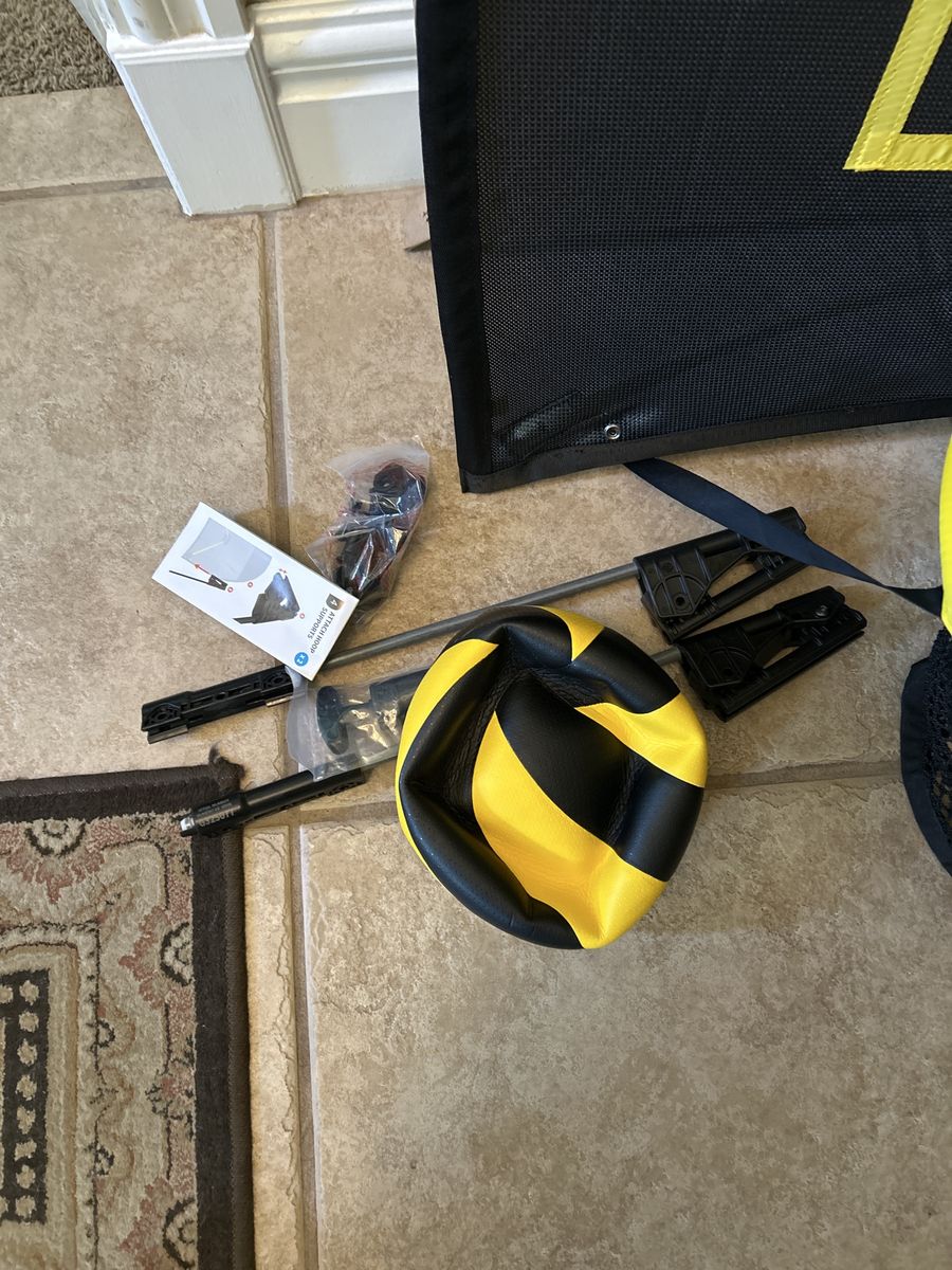 VenmoComes with supports, ball, ball pump, and instructions. Hooks onto trampoline net wall.