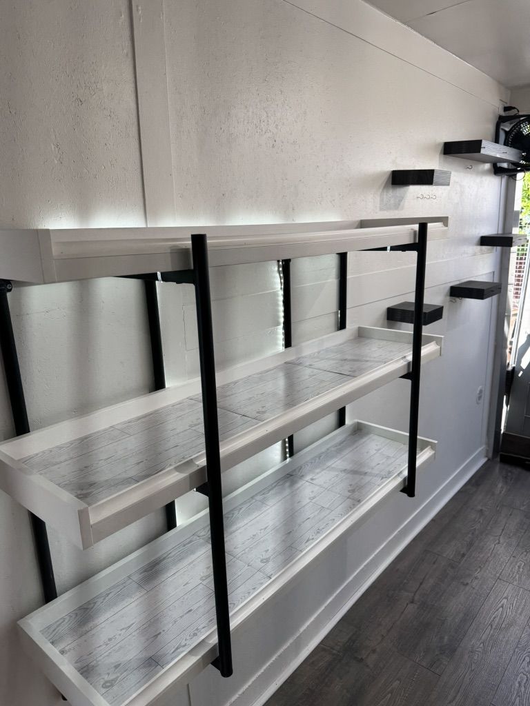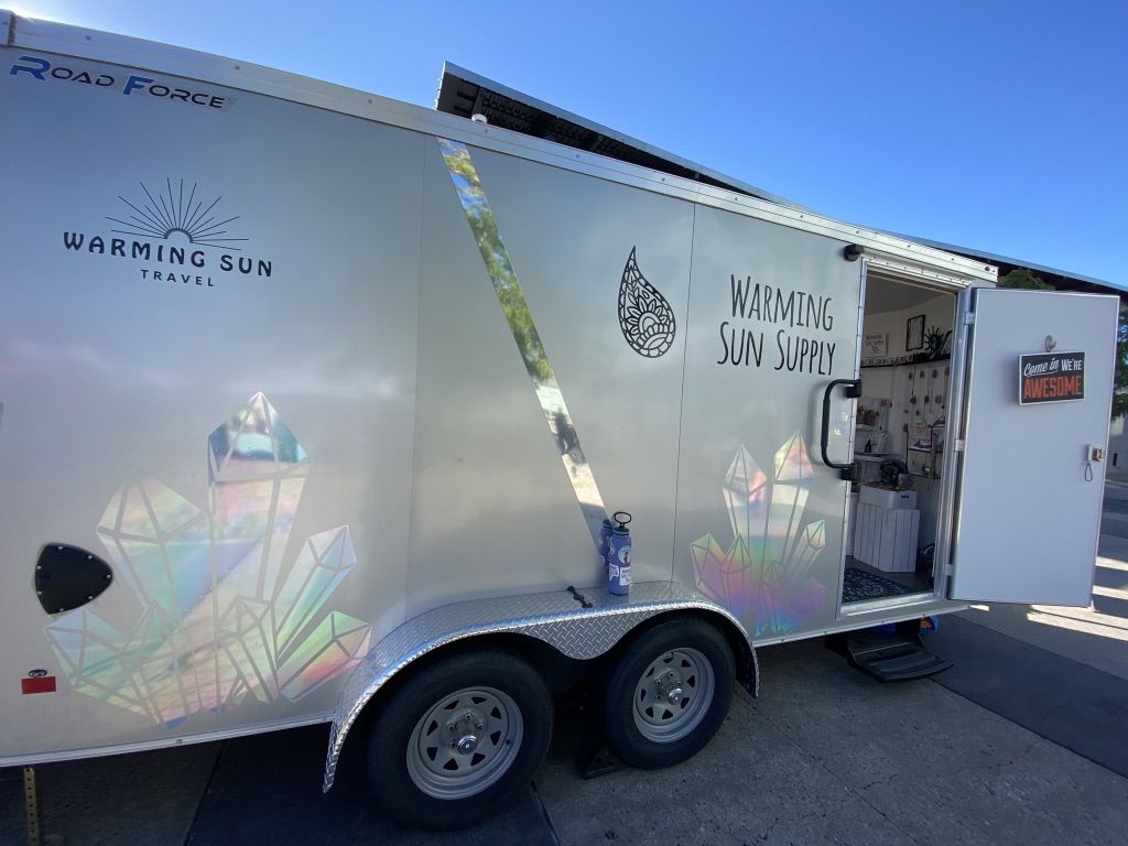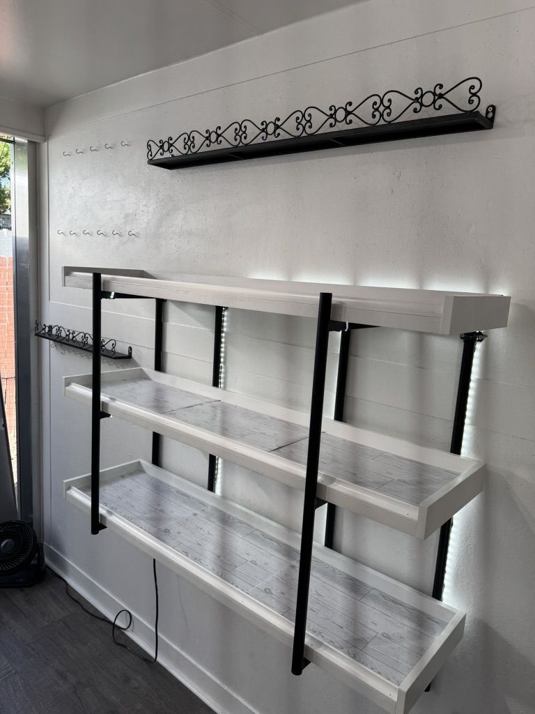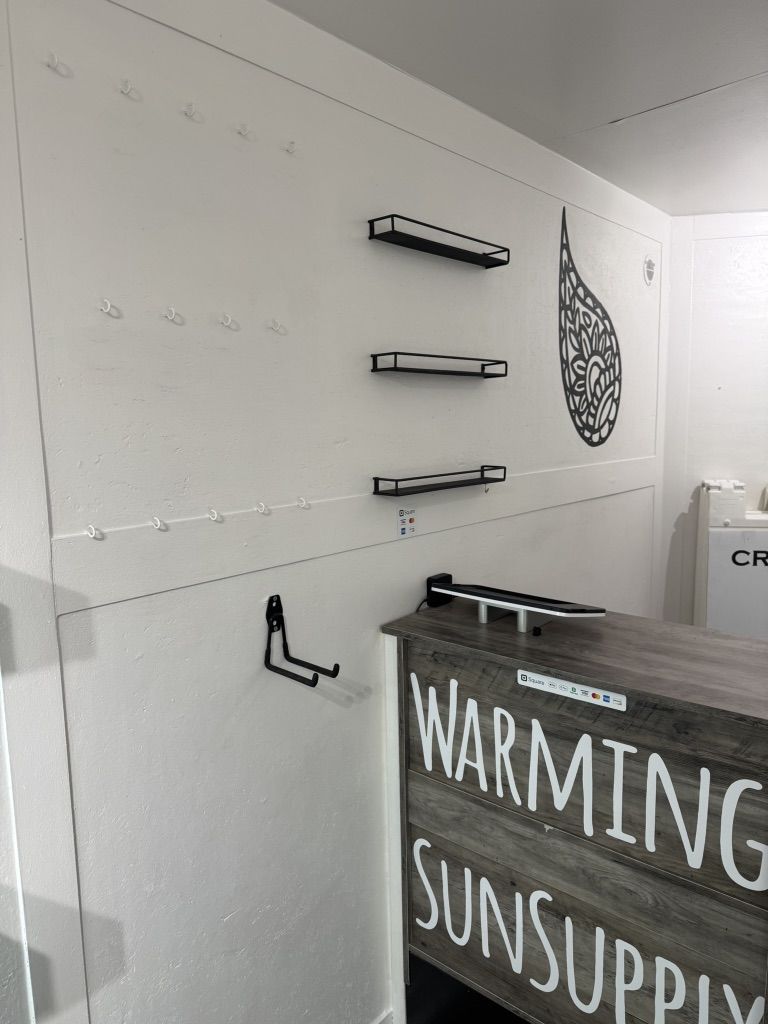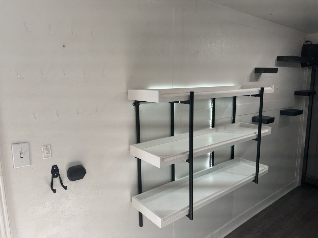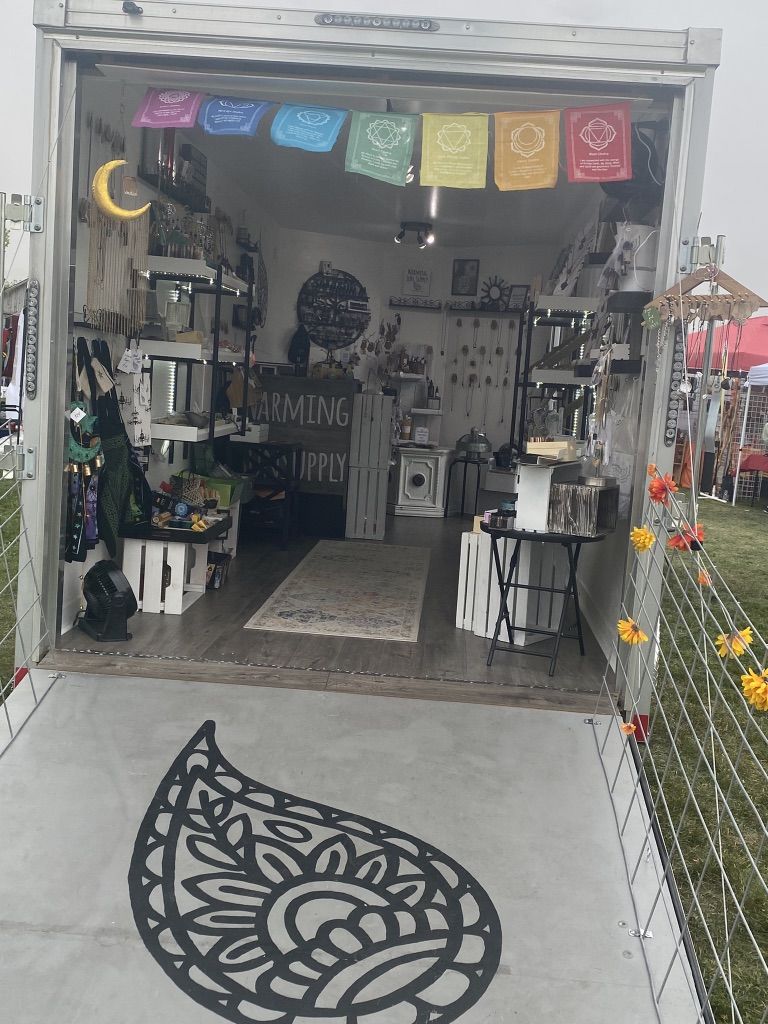This unit is perfect for festivals, private events, and more. Imagine rolling up to the event 75% set up already. You attract shoppers out of the sun and wind. Imagine coming home after a long, multi-day event and not having to unload your vehicle. Easy peasy. This trailer features a spring-assisted ramp with display panel railing, a 12V electric trailer jack, undercoating, a one-piece roof, premium wood laminate flooring, custom shelving, LED display lighting, and a check-out stand with iPad and payment station. Quiet generator included or plug into 110 power.