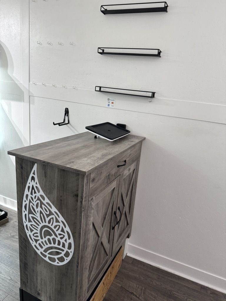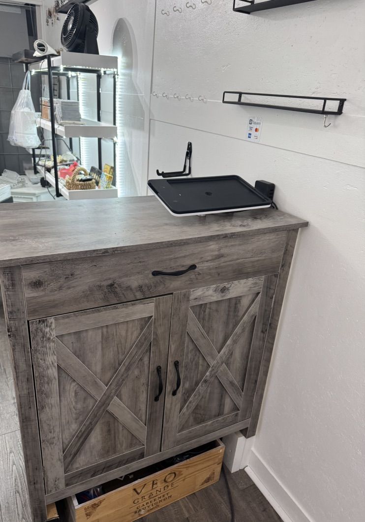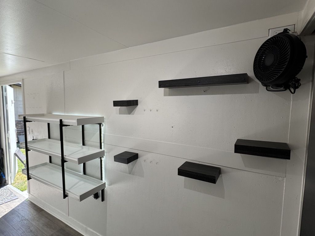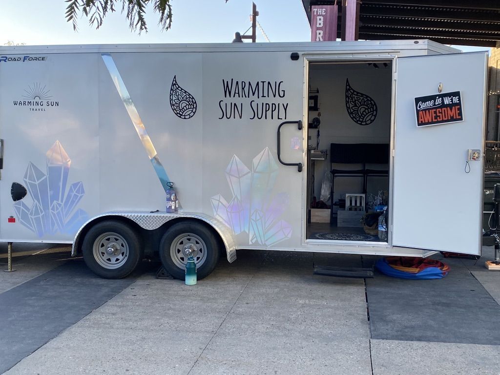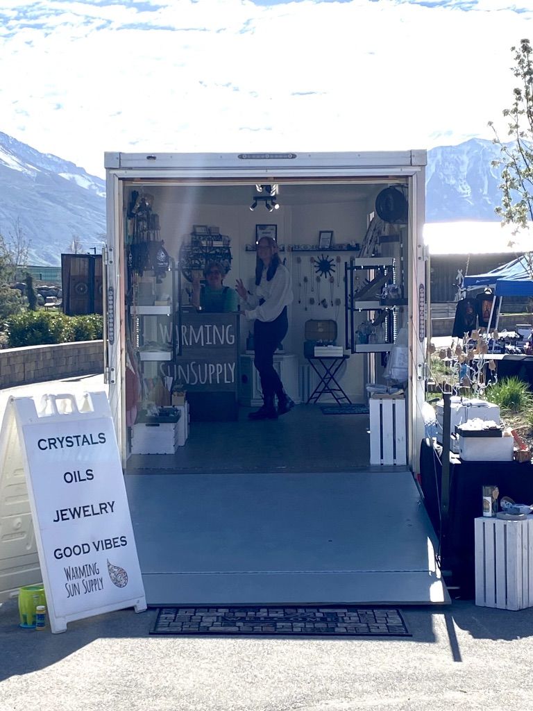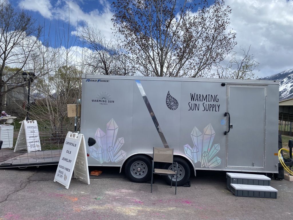 This unit is perfect for festivals, private events, and more. Imagine rolling up to the event 75% set up already. You attract shoppers out of the sun and wind. Imagine coming home after a long, multi-day event and not having to unload your vehicle. Easy peasy. This trailer features a spring-assisted ramp with display panel railing, a 12V electric trailer jack, undercoating, a one-piece roof, premium wood laminate flooring, custom shelving, LED display lighting, and a check-out stand with iPad and payment station. Quiet generator included or plug into 110 power.