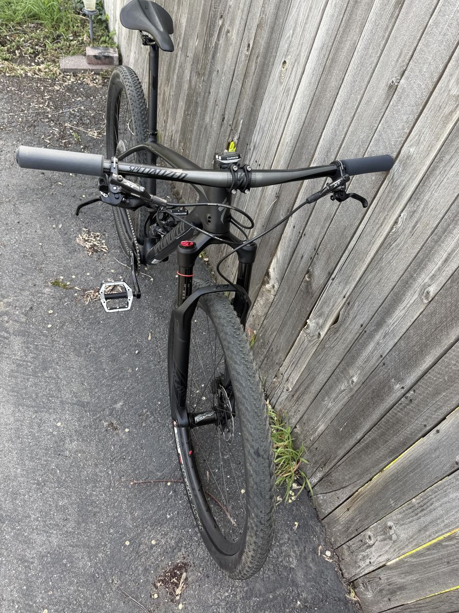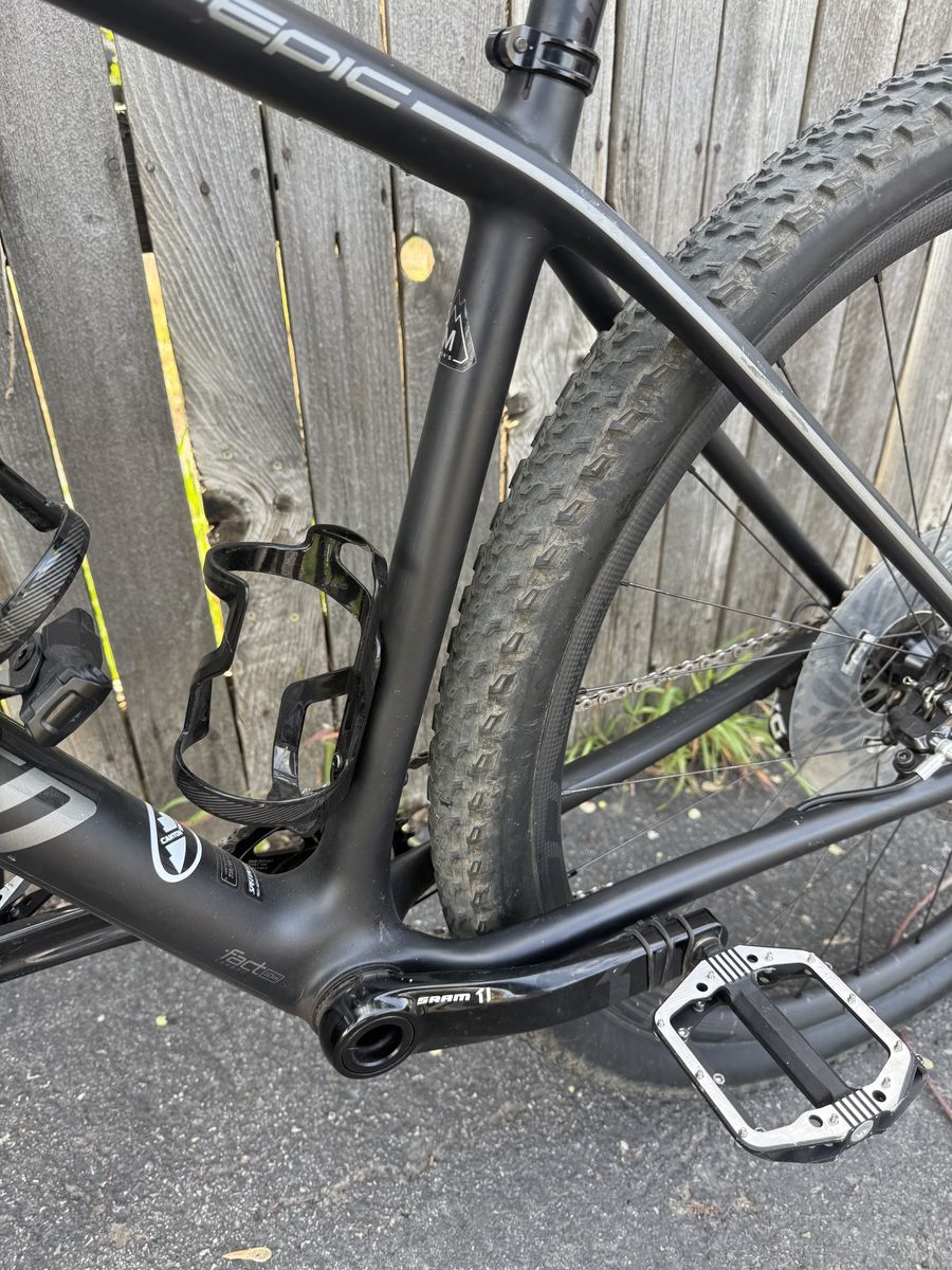 CashAppThis is a 2017 Specialized Epic Hardtail Pro Carbon World Cup in a size Medium. Hardly has any miles on it (5-10 miles). All stock parts, tubeless setup, comes with pedals and garmin!