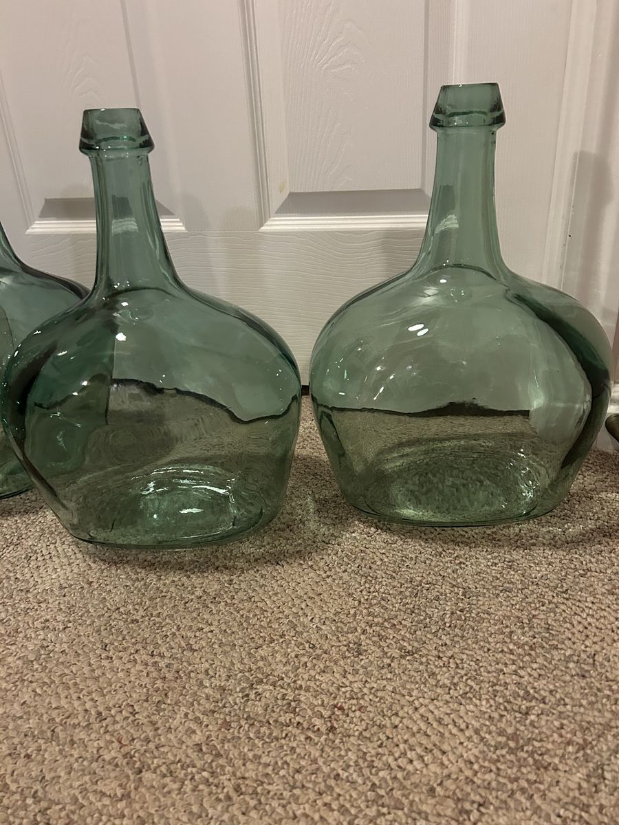 5 Large light green clear vases. Used once for a wedding reception. 16” tall, 10” wide at widest part of the vase. The opening is 1 1/2 inches. If interested Text Toni at 801-231-4907. The pictures only show 4 but I have 5 of them. $30.00 for all.