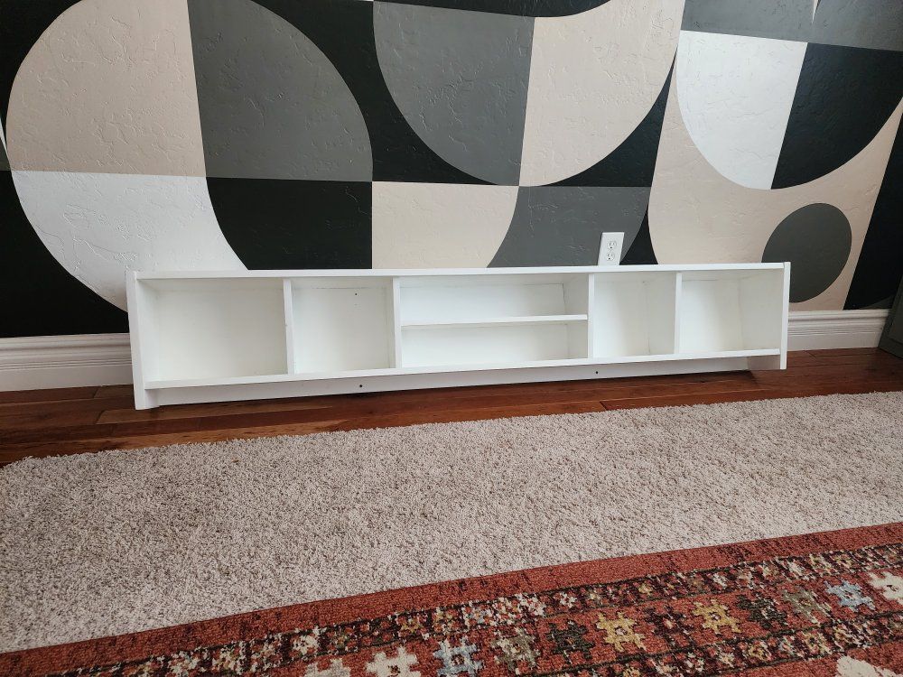 VenmoThis is an awesome white solid wood shelf. It was originally a mcm king headboard that was turned into a wall shelf. It needs to be screwed to the wall. The dimensions are: 79" wide, 15" tall and 9" deep. $30 in Herriman. Sorry, no holds without a Venmo or until you are on your way. Cash or Venmo only