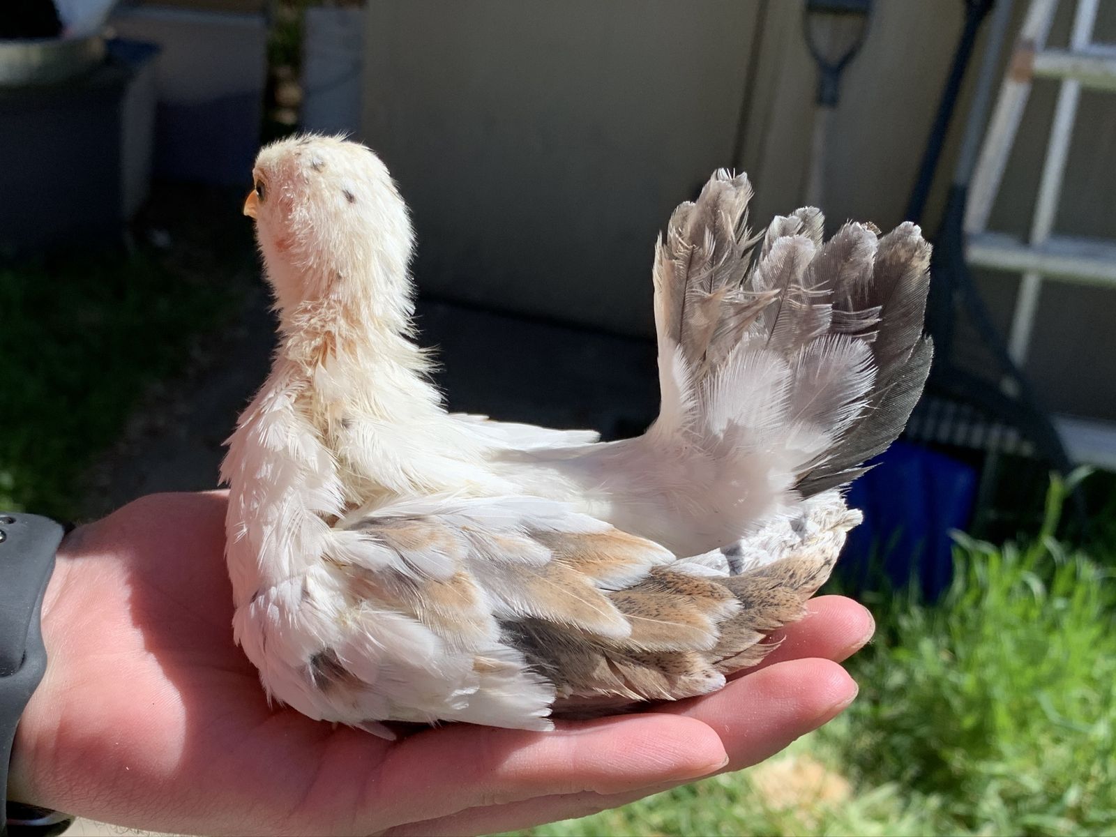 Venmo3-4 wk old purebred Serama chick. Her pattern is a beautiful mottled white and brown. It’s too early to be sure but I’m pretty sure she is a pullet. If she does turn out to be a pullet I’m happy to keep her for breeding, so shoot me an offer soon to buy her straight run before I raise the price or take her off the market.