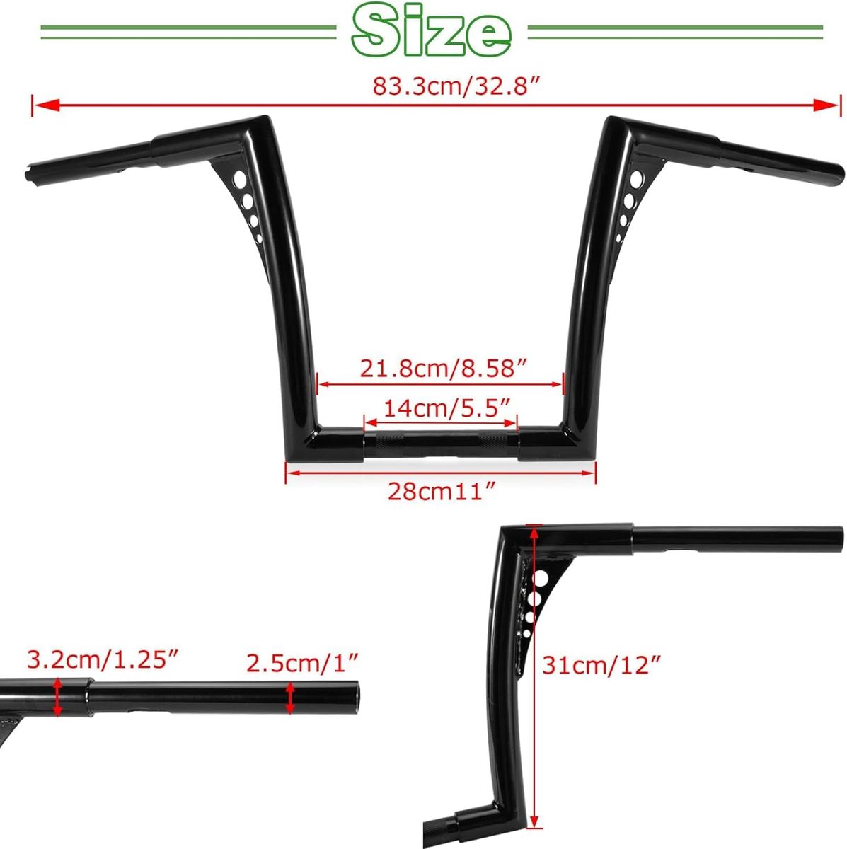 ApplePayApe Hangers for Motorcycle Handlebar - Ohhmoto 1-1/4" Diameter Sportster Handlebars Bar Compatible with Road King Glide Softail Slim Dyna XL 883 1200 Breakout Fat Boy 1994-2024,12" Rise Black