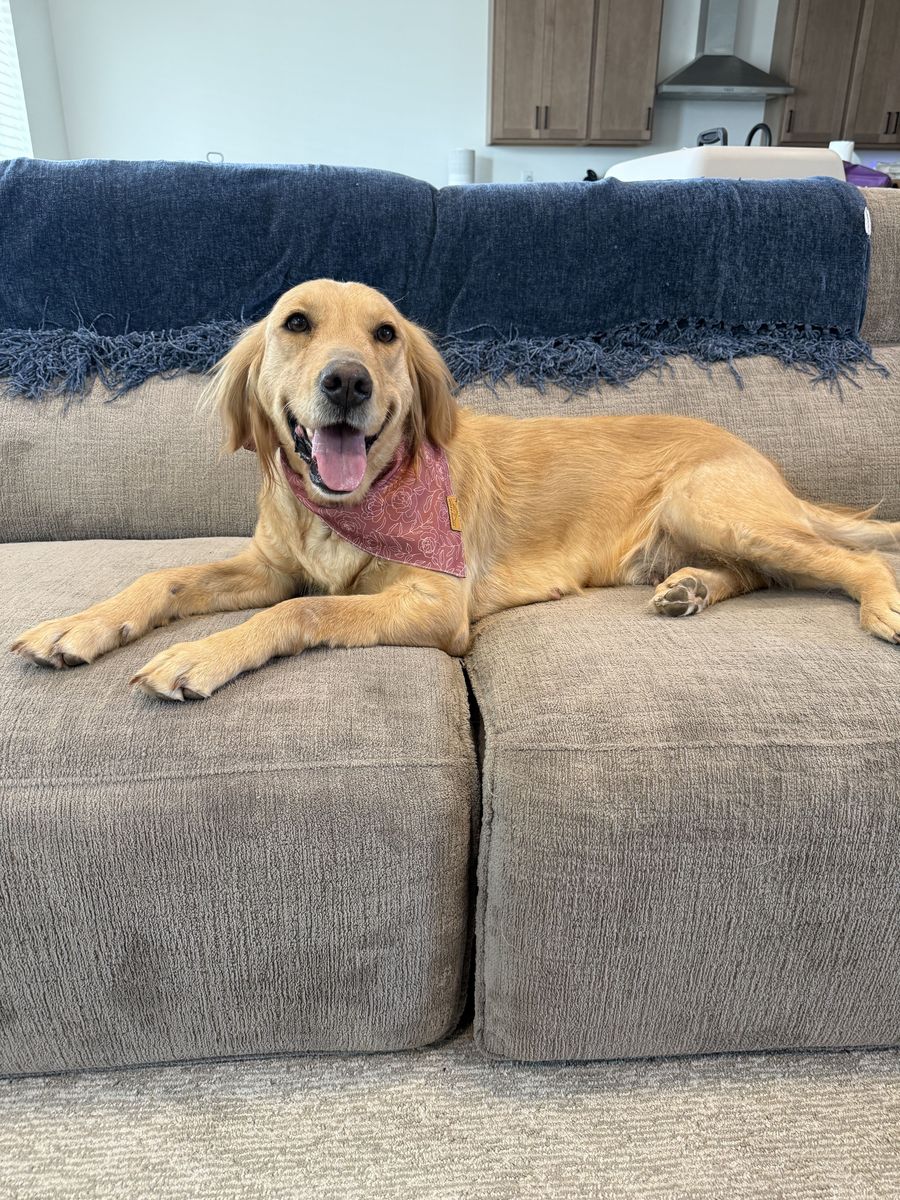 What you should know about her health: Alexa developed a thyroid condition, most likely triggered by the stress of her last pregnancy. Before we caught it, she lost some coat — it's growing back nicely now that she's on medication. Our holistic vet is optimistic she'll be able to come off the medication within the next six months, but she will need a follow-up blood test to confirm before discontinuing. We'll make sure you have all the details on her current care so the transition is seamless.