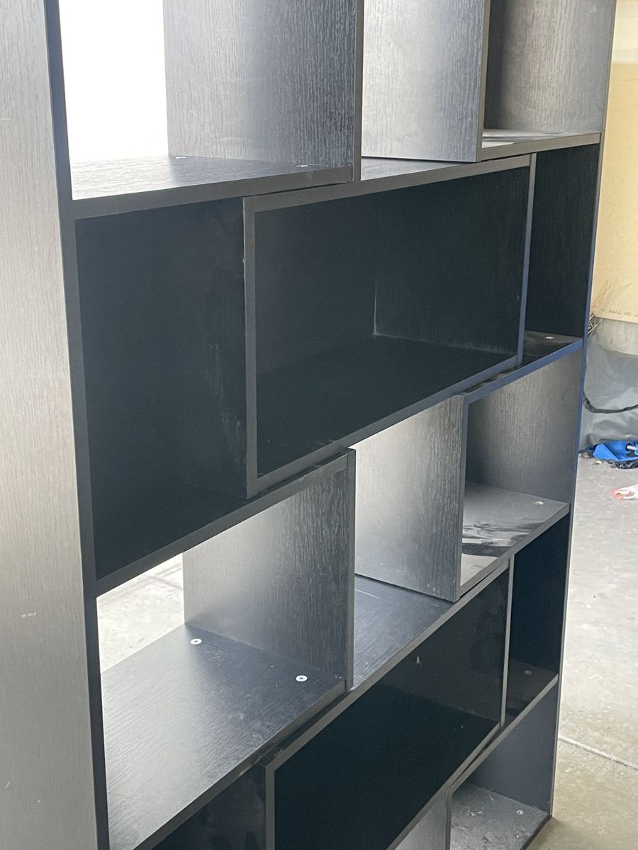 Details:• Rich walnut (black) finish – modern & timeless • Adjustable shelving for flexible storage/display • Works great as a bookcase OR room divider • Sturdy, premium quality construction