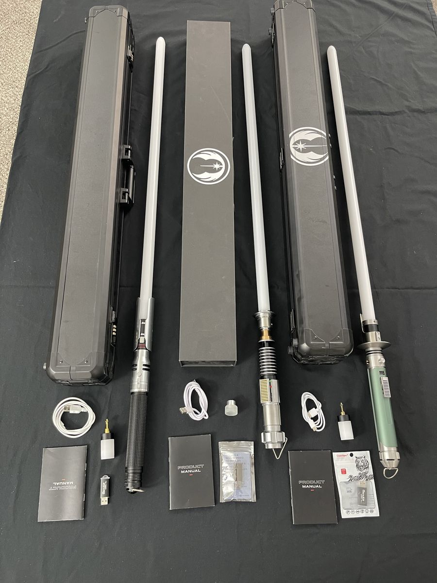 VenmoNeopixel lightsaber based on Kanan Jarrus in Star Wars Rebels. It has flash on clash effects, motion sounds, blaster-deflecting effects, tip-drag, and customization of sound fonts, light up effects, color, and other settings via button or app.