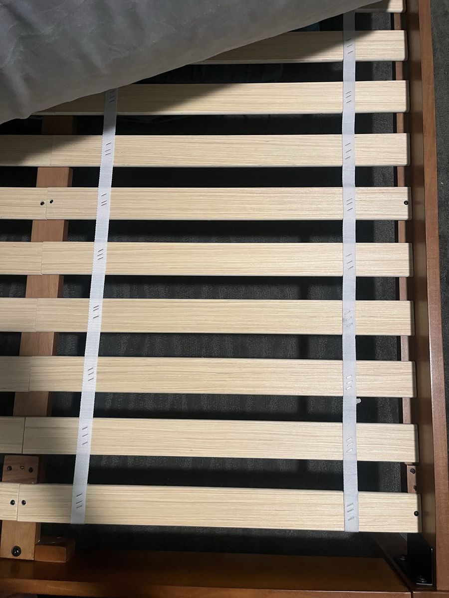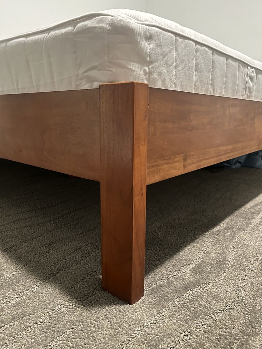 ZelleGently used West Elm Simple Bed Frame (Queen, Acorn finish) with a Queen IKEA firm mattress. Stylish, sturdy, and ready for immediate use - perfect for a clean, minimalist bedroom setup.