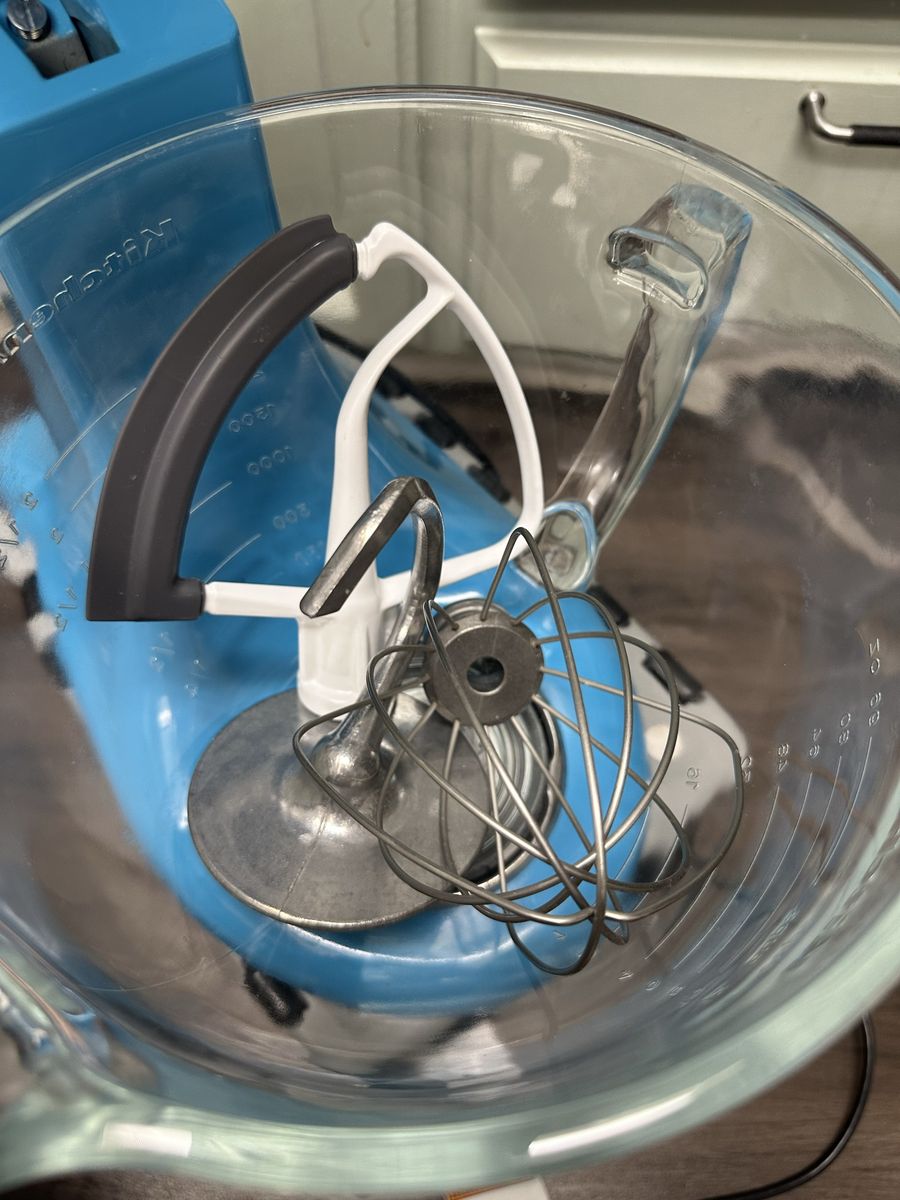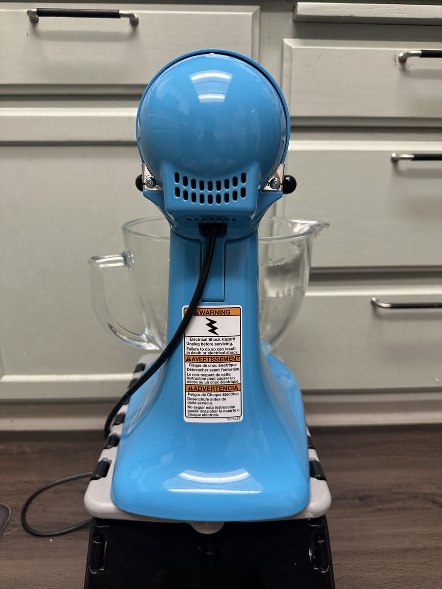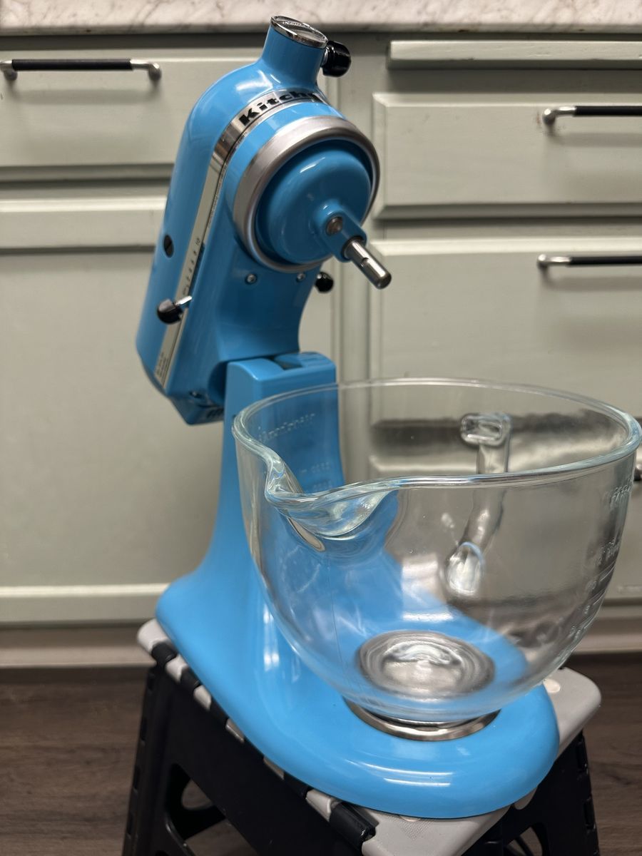 VenmoFully functional KitchenAid Artisan 5‑quart stand mixer in blue. Great condition. Includes glass mixing bowl, flat paddle, wire whisk, and dough hook. Clean and well cared for. Selling only because we upgraded to a newer model.