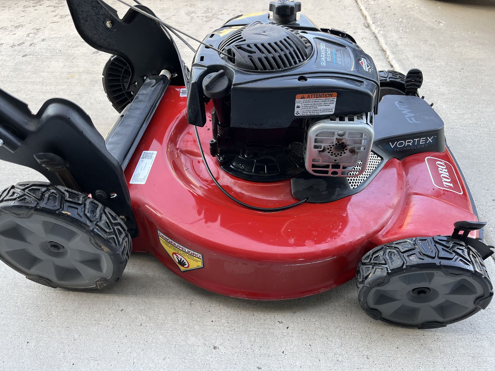 VenmoLike new TORO 21442 model lawn mower. Self propelled walk behind, 22 inch cut, 4 stroke engine starts with one or two pulls, tires like new, blade just sharpened, adjustable height, catcher like new.
