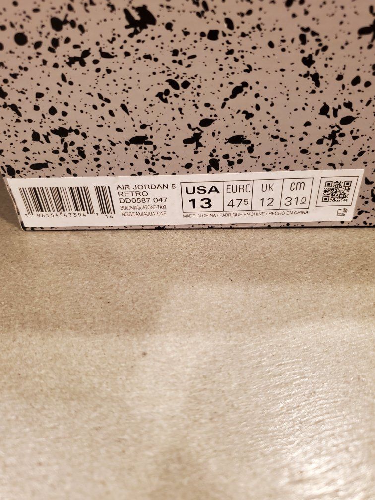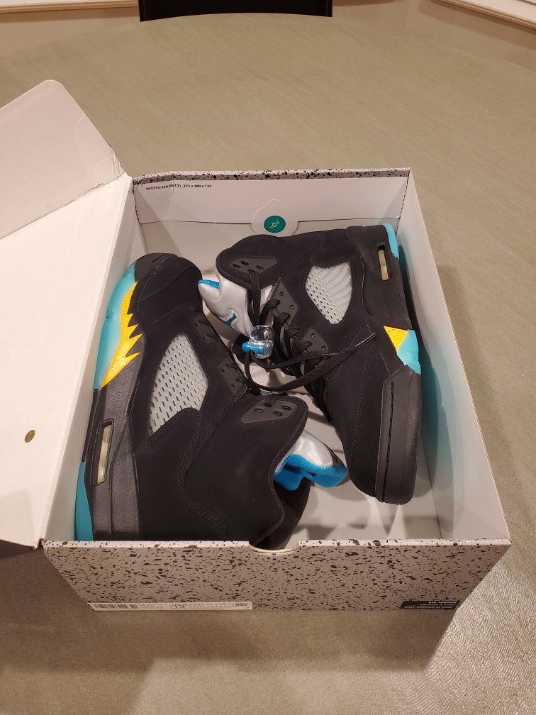 VenmoJordan 5 Aqua size 13. Brand new never worn. Only one shoe has been tried on. The other shoe is still factory laced. 100% authentic. $230
